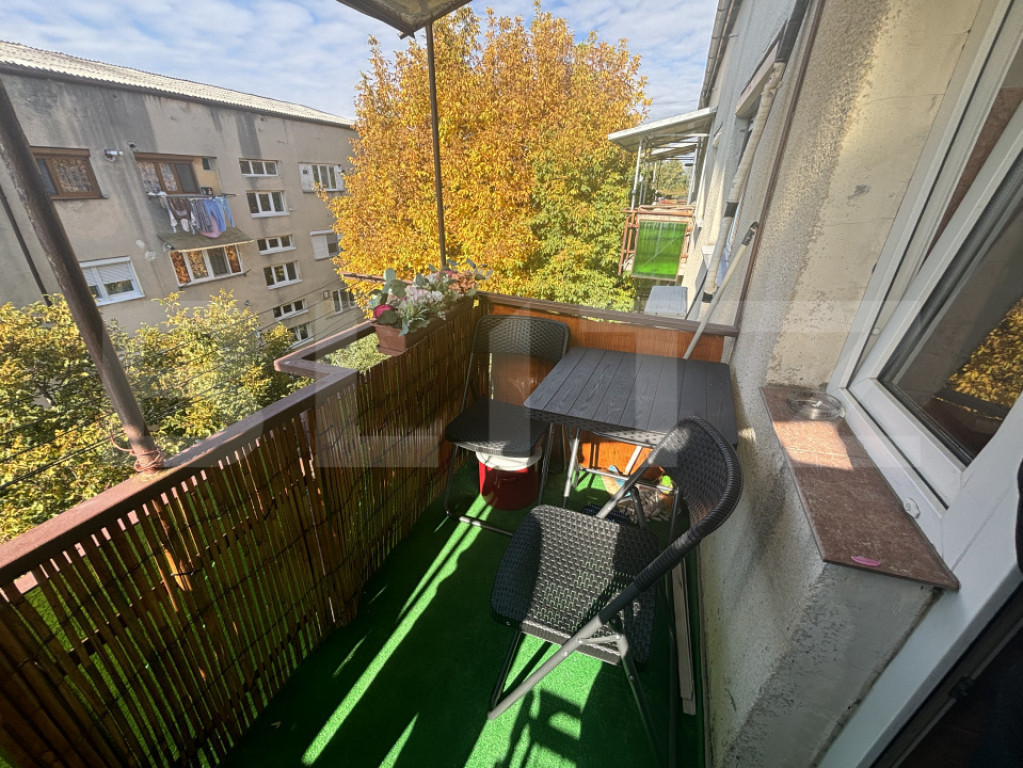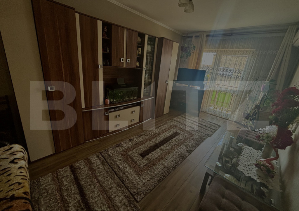 Blitz vă propune spre vânzare un apartament cu 2 camere situat în cartierul Micro 17, la etajul 4/4 al unui bloc cu scară renovată, acoperiș și vecini liniștiți. Apartamentul are o suprafață utilă de aproximativ 50 mp și este compartimentat eficient: hol, baie, bucătărie, living, dormitor și două balcoane. Dotări și îmbunătățiri: • geamuri termopan • aer condiționat • centrală termică • parchet laminat nou • ușă metalică la intrare • ușă glisantă la living • beci la subsol Se vinde parțial mobilat, fiind o opțiune excelentă pentru locuit sau investiție. Blocul este curat, cu scară îngrijită și acoperiș reabilitat, situat într-o zonă bine poziționată, aproape de magazine, școli, stații de transport, piață, parc și centru de permanență. Pentru mai multe detalii sau pentru programarea unei vizionări, vă rugăm să contactați Blitz. Cod ofertă / ID BLITZ: P155585 Id intern: P155585
