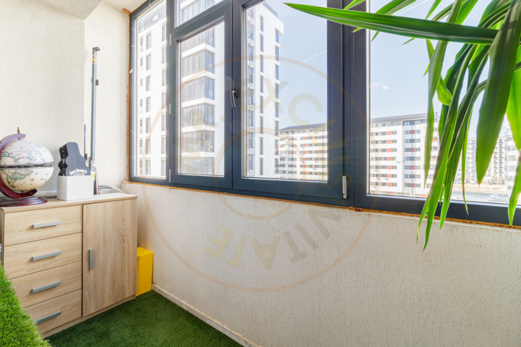 Apartament de 2 camere decomandat situat față în față cu stația de STB și lângă complexul Transparent Residence, complet mobilat și utilat modern. Apartamentul este situat în complexul Avangarde Home, în Militari Residence, într-un bloc construit în anul 2019, la etajul 3 din 5. Locuința are o suprafață totală de 49 mp, fiind compartimentată astfel: la intrare avem holul, unde este poziționat un spațiu generos de depozitare din tavan până în podea. În partea dreaptă se află livingul, cu zonă de dining, alături de balconul închis cu geamuri termopan. În față regăsim bucătăria complet mobilată și utilată, cu loc dedicat pentru luat masa. Continuând, avem dormitorul complet mobilat și utilat, iar nu în ultimul rând baia, dotată cu cadă, aerisire prin ventilație și mașină de spălat rufe. Apartamentul se vinde complet mobilat și utilat, fiind pregătit pentru mutare imediată. Locuința beneficiază și de un loc de parcare în incinta complexului, care nu este inclus în prețul de vânzare al apartamentului. În cadrul complexului, copiii se pot juca în siguranță într-un parc special amenajat, ferit de traficul urban. Accesul este controlat prin barieră, iar locatarii beneficiază de pază și supraveghere video, astfel încât să te simți mereu în siguranță. Beneficiezi de o conectivitate excelentă la rețeaua de transport public, deoarece chiar în lateralul blocului se află stația de STB, deservită de autobuzul 483, cu legături directe către rețeaua de metrou și bulevardul Iuliu Maniu. De asemenea, cu mașina ai multiple ieșiri rapide către oraș. Pentru cumpărături ai în apropiere supermarketuri precum Lidl, Kaufland și Penny, iar complexul Chiajna Shopping Center este situat chiar în fața complexului, la doar 1 minut de mers pe jos. Un apartament modern, bine poziționat, care îți oferă confortul unei locuințe pregătite pentru mutare într-un complex sigur și bine conectat. Id intern: P8220