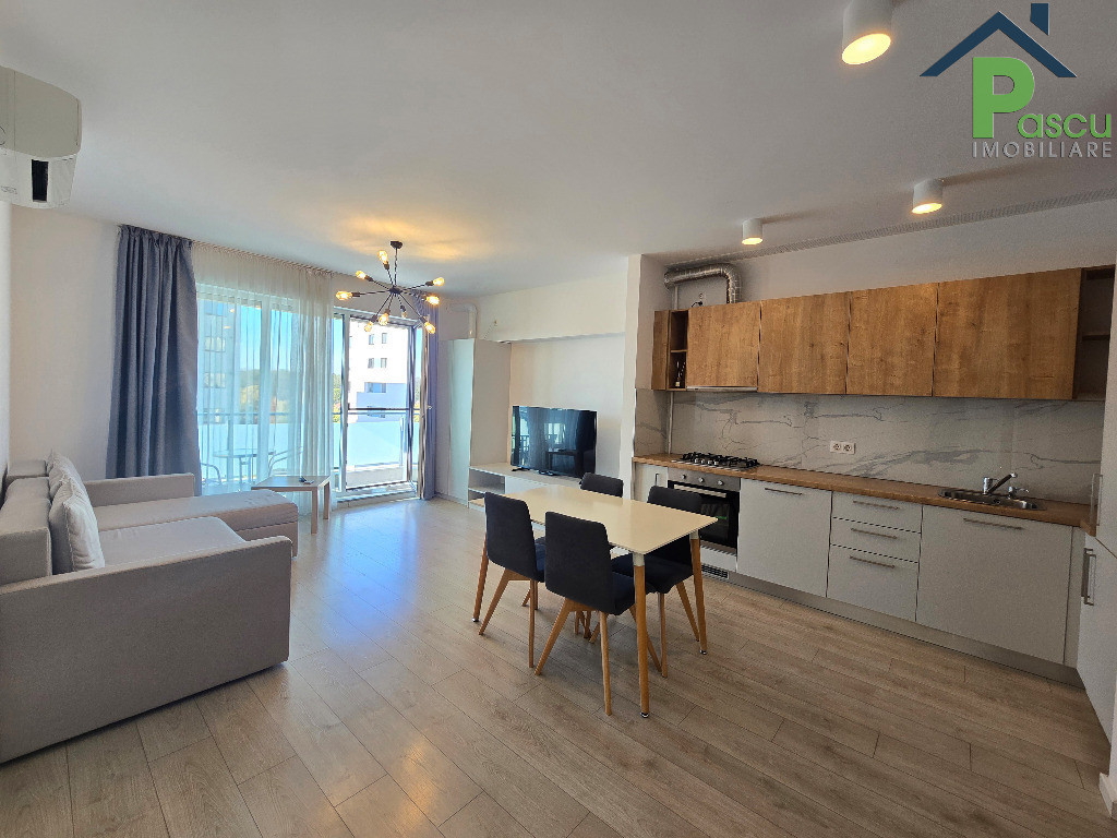 Exclusivitate PASCU Imobiliare! Apartamentul face parte din ansamblul New Point, situat pe bulevardul Pipera, nr. 168, finalizat in anul 2019, ce cuprinde 6 blocuri cu regim de inaltime P+9, ansamblu premium cu o pozitie ideala, ce se bucura de spatii verzi, zone de recreere, acces securizat, paza umana 24/24 si supraveghere video. Apartamentul este situat la etajul 6/9, este semi-decomandat, cu o suprafata de 50 metri patrati utili, balcon cu acces din living, bucatarie open-space si se inchiriaza mobilat si utilat complet, premium, conform pozelor. Impreuna cu apartamentul se inchiriaza si locul de parcare privat, vizibil din apartament. Imobilul este dotat cu usa metalica anti-efractie, videointerfon, centrala termica proprie in condensatie, geamuri tripan cu tamplarie PVC, parchet laminat 12 mm import Austria, gresie si faianta import Itaia, aparat de aer conditionat Inverter, televizor smart Samsung QLED. Bucataria este mobilata la comanda si utilata complet, fiind dotata cu aragaz, cuptor, hota si combina frigorifica mascata in mobila. Scara este finisata cu granit si dispune de 2 lifturi de 8 persoane, marca Schindler. Apartamentul este liber, disponibil imediat! Pentru mai multe detalii si stabilirea unei vizionari, accesati pascuimobiliare.ro.