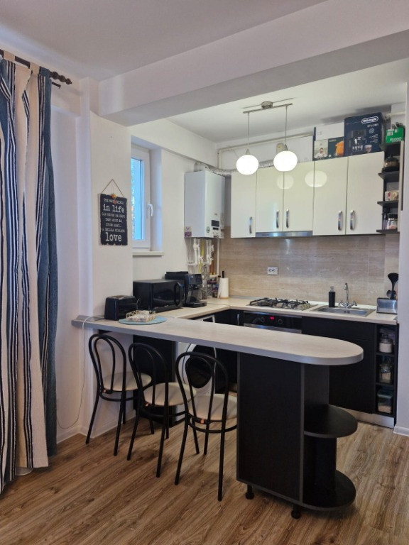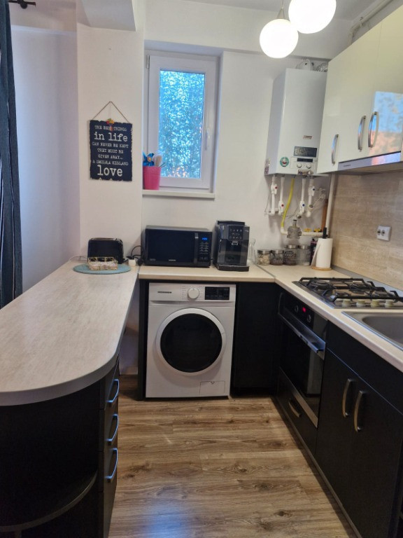 Suprafata totala 63 m² Suprafata utila 52 m² Numar camare 2 Numar bai 1 Numar balcoane 1 Etaj 1/3 Sistem incalzire centrala proprie Apartamentul este compartimentat astfel: dormitor, living cu bucatarie open space, hol, baie si balcon pe doua laturi, avand o suprafata de 10 m² din care jumatate este inchis cu geam termopan. Se vinde dotat cu aer conditionat, bucatarie mobilata si utilata astfel: cuptor electric, plita pe gaz, hota, masina de spalat rufe si frigider. Blocul face parte dintr-un complex de 10 blocuri, monitorizat video, iar accesul in complex se face cu bariera. Apartamentul dispune si de loc de parcare, zona este linistita si curata, iar la iesirea din complex este statia de autobuz ( linia 464) legatura cu tramvaiul 32, troleibuz 96, autobuz 226, 227. In zona exista benzinarie, shop&go, farmacie, gradinita, cofetarie cu laborator propriu. Acces rapid la soseaua de centura si A0 ( 5 min cu masina).