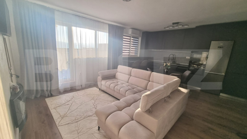 Vă propunem spre vânzare un apartament cu 2 camere, cu bucătărie și living tip open space, dormitor, baie și terasă spațioasă dispusă în jurul apartamentului. Proprietatea are o suprafață utilă de 52 mp, la care se adaugă o terasă de 44 mp, oferind un spațiu exterior generos. Apartamentul beneficiază de finisaje calitative, aer condiționat și se vinde mobilat și utilat complet. Este situat la etajul 4 într-un imobil izolat termic, cu lift, construit in anul 2020, într-o zonă liniștită din Baciu, cu vedere panoramică deosebită: spre orașul Cluj-Napoca pe o parte și spre Pădurea Baciu pe cealaltă parte. Proprietatea este ideală pentru cei care își doresc intimitate, priveliște și confort, într-un cadru aerisit, aproape de oraș. Cod ofertă / ID BLITZ: P162117 Id intern: P162117