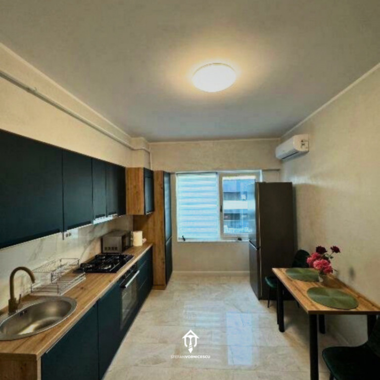 Apartament nou, aflat la prima închiriere, situat în blocul 8 al complexului rezidențial Royal Town, Aleea Mihail Sadoveanu, Copou - Etaj 2 din 8. Loc de parcare subteran inclus în preț. Caracteristici: – Suprafață utilă: 48 m² – Balcon – Încălzire în pardoseală, controlabilă prin tabletă/aplicație mobilă – Mobilier și electrocasnice noi (Beko, Whirlpool, Gorenje) – Mașină de spălat cu uscător – Mașină de spălat vase – Cuptor cu microunde, plită, cuptor electric – TV, aer condiționat – Bucătărie complet echipată Poziționare: Aleea Mihail Sadoveanu, Copou – în apropiere: Universitatea „Al. I. Cuza”, Grădina Botanică, Parcul Copou, supermarketuri, cafenele, farmacii. Transport public: autobuze, cu legături directe spre Centru, Tudor, Gara Mare. Condiții: – Chirie: 530 €/lună – Se percepe: 1 lună chirie în avans + 1 lună garanție (returnabilă dacă sunt respectate clauzele contractuale) – Contract înregistrat la ANAF – Comision de intermediere Pentru mai multe informatii sau pentru programarea unei viziionari, ne puteti contacta la numarul aferent anuntului. Id intern: P189004