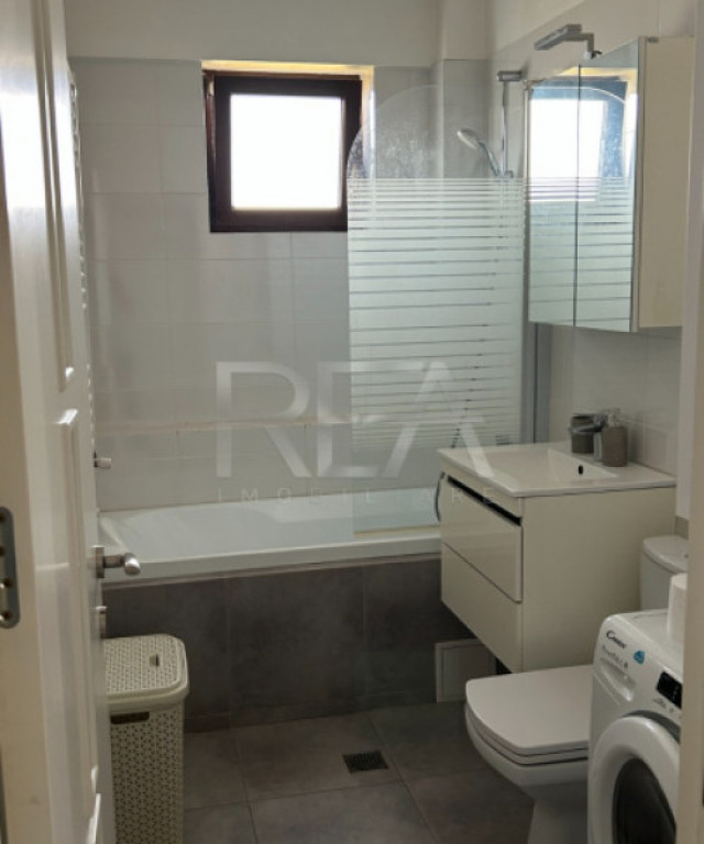 R.E.A. Imobiliare Apartament cu 2 camere, decomandat, la etajul 4/4, P+4, Finalizat în anul 2017 Suprafata totala de 57.55 m.p, din care suprafata utila 49.75 m.p, balcon 7.80 m.p. Configuratie: 1 dormitor , living bucatarie, 1 baie si balcon. Sistem incalzire: Centrala Proprie. Apartamentul dispune de balcon cu acces din living si din dormitor, mobilat integral, utilat cu aer conditionat, masina spalat vase, masina spalat rufe cu uscator, frigider, aragaz, hota. Detine o boxa de circa 6mp, loc de parcare in curte, acces cu telecomanda. Zona este una liniștită, înconjurată de parcuri. În vecinătatea apartamentului fiind scoala, gradinita, parc, magazine. Acces la transportul în comun-> autobuz, stație metrou. Pentru detalii si vizionari, vă rugăm să ne contactați, specificand codul de identificare P9494. Id intern: P9494