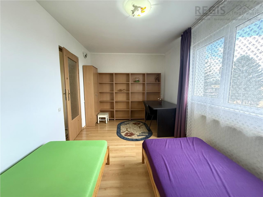 ID: 5936 Regis Imobiliare va propune spre vanzare un apartament cu 2 camere, semidecomandat, situat in zona Astra ndash; Gemenii, Brasov. Pozitionat intr-o zona linistita, cu acces rapid la mijloace de transport, magazine si spatii verzi. Apartamentul beneficiaza de loc de parcare inclus si acces facil la parcuri pentru copii si zone verzi - un avantaj important pentru familii sau pentru cei care cauta un cadru placut si aerisit. Detalii apartament: - Suprafata utila: 50 mp - Compartimentare: 2 camere semidecomandate - Structura: bucatarie, sufragerie cu balcon incorporat (balconul a fost inchis si integrat in zona de zi), hol intermediar cu dressing, dormitor si baie cu geam - Etaj: 4 din 4 - Loc de parcare inclus - Apartamentul se vinde complet mobilat si utilat Dotari interioare: - Finisaje moderne: parchet, gresie, faianta, vopsea lavabila - Tamplarie PVC cu geam termopan ndash; izolatie termica si fonica - Usa metalica la intrare - Aer conditionat in sufragerie - Centrala termica proprie si calorifere - Interfon la intrarea in bloc Bucatarie complet mobilata si utilata: Aragaz pe gaz, Cuptor, Hota, Frigider cu congelator, Cuptor cu microunde, Masina de spalat rufe, Baie cu geam si masina de spalat Avantaje suplimentare: - Zona comuna la parterul blocului unde se pot lasa biciclete si carucioare. - Zona verde si loc de joaca pentru copii in apropiere - Acces facil la transport in comun - Aproape de scoli, magazine alimentare si zone comerciale Un apartament foarte bine intretinut, situat intr-o zona accesibila si cautata din Brasov, ideal pentru rezidenta sau investitie. Va stam la dispozitie pentru detalii suplimentare si programarea unei vizionari. Asteptam cu drag sa ne contactati! Comisionul agentiei este de 2% TVA Andreea, Consultant Imobiliar