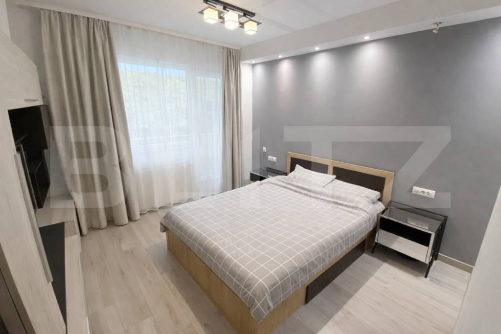 Vă propunem spre vânzare un apartament modern cu 2 camere, situat în Baciu, zona Regal, la parterul unui imobil bine întreținut. Locuința impresionează prin compartimentarea practică și prin terasa generoasă de aproximativ 30 mp, cu acces atât din dormitor, cât și din zona de living cu bucătărie open-space. Compartimentare: Hol de acces Living cu bucătărie open-space Dormitor generos cu ieșire pe terasă Baie Cameră suplimentară de aproximativ 5 mp (ideală pentru dressing, birou, cameră de copil sau spațiu de depozitare) Terasă de 30 mp Apartamentul se vinde complet mobilat și utilat, exact conform fotografiilor. Este pregătit pentru mutare imediată. Dotări: Centrală termică proprie Mașină de spălat rufe Frigider Plită Cuptor Mobilier modern Terasa generoasă oferă un spațiu ideal pentru relaxare, amenajare zonă verde sau loc de luat masa în aer liber, fiind unul dintre principalele avantaje ale proprietății. O alegere potrivită atât pentru locuință proprie, cât și pentru investiție. Garaj subteran inchis cu usa rulanta, actionata din telecomanda ( inclusa in pretul apartamentului) Pentru detalii suplimentare și programarea unei vizionări, vă stăm la dispoziție. Cod ofertă / ID BLITZ: P165302 Id intern: P165302