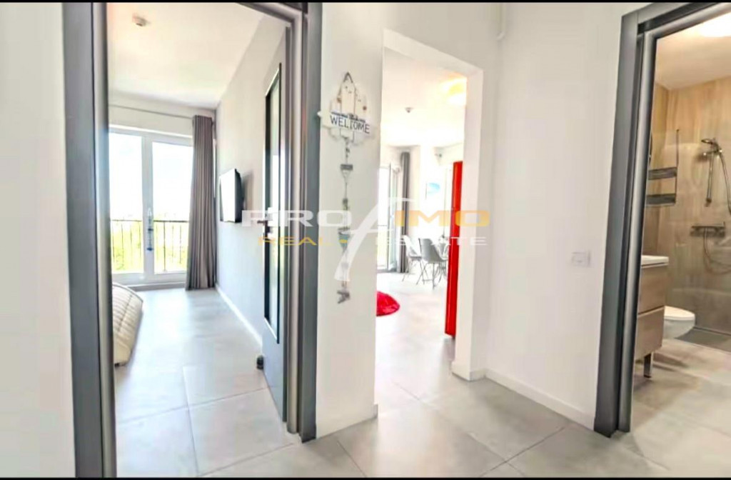 Profimo Real Estate va prezinta spre vanzare un apartament cu 2 camere cu o suprafata utila de 42mp. o terasa de 17mp. cu vedere atat la Mare cat si spre Lacul Mamaia si cu un loc de parcare in proprietate. Apartamentul se vinde Mobilat-Utilat integral, acesta se afla in circuitul turistic cu o nota de 4,86 din 5 / 30 recenzii pe un site de inchirieri. Ca pozitie este situat la etaul 7 intr-un bloc cu 9 etaje construt in 2020 in Zona sens giratoriu Hotel Caraiman Rest.Diplomatic