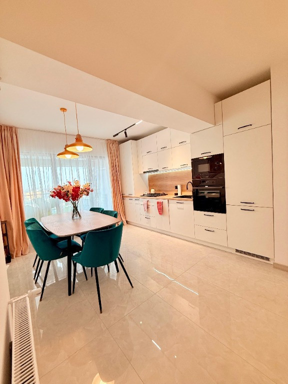 Oferim spre inchiriere un apartament cu 2 camere situat in ansamblul Select Residences, finalizat in 2024, pe Calea Dudesti nr. 186, intr-o zona semi-centrala apreciata a Capitalei, la doar cateva minute de Piata Alba Iulia si Bucuresti Mall Vitan, cu acces facil catre multiple puncte de interes. Situat la etajul 10 din 12, apartamentul are o suprafata utila de 59 mp, completata de o logie generoasa de aproximativ 10 mp amenajata ca zona de relaxare, si ofera o vedere deschisa asupra orasului — cadrul ideal pentru momente de liniste, cafeaua de dimineata sau seri relaxante. Apartamentul beneficiaza de centrala termica individuala, contorizare separata pentru toate utilitatile (gaz, energie electrica si apa), precum si de 2 unitati de aer conditionat, oferind control deplin asupra consumului si climatului interior, si se inchiriaza complet mobilat, cu mobilier realizat la comanda pentru a valorifica optim fiecare spatiu si pentru a oferi functionalitate maxima. Interiorul este gandit pentru un stil de viata rafinat si functional: - Living generos, amenajat modern, cu canapea confortabila si zona TV eleganta - Bucatarie open space complet utilata cu electrocasnice noi Gorenje si spatii de depozitare ample - Zona de dining luminoasa, perfecta pentru mese relaxate sau seri petrecute acasa - Dormitor primitor cu dressing incapator si pat cu spatiu de depozitare - Baie complet utilata si accesorizata - Logie spatioasa, mobilata, cu vedere deschisa Alte detalii: - Prima inchiriere - Contract pe termen lung, minim 1 an, declarat si inregistrat la ANAF - Locuinta destinata unui stil de viata fara fumat - Desi apreciem si iubim animalele, apartamentul nu este configurat pentru a gazdui animale de companie - Ideal pentru o persoana sau un cuplu care cauta un apartament nou, elegant si linistit Proximitati (distante aproximative): - Mega Image / Mega Shop & Go — ~50 m - Piata Alba Iulia — ~550 m - Metrou Dristor 1 & 2 — ~600 m - Bucuresti Mall Vitan — ~700 m - Kaufland Mihai Bravu — ~800 m - ParkLake Shopping Center — ~1.5 km - Piata Unirii — ~2.7 km Parcuri si zone verzi: - Parcul IOR— ~1.8 km - Parcul Tineretului — ~2.4 km Transport public: - Metrou: Dristor (M1, M3) - Tramvaie: 19, 23, 27 — acces rapid din zona Dristor / Mihai Bravu - Autobuze: 123, 135, 311 — legaturi directe catre centru, Unirii, Piata Romana, Universitate