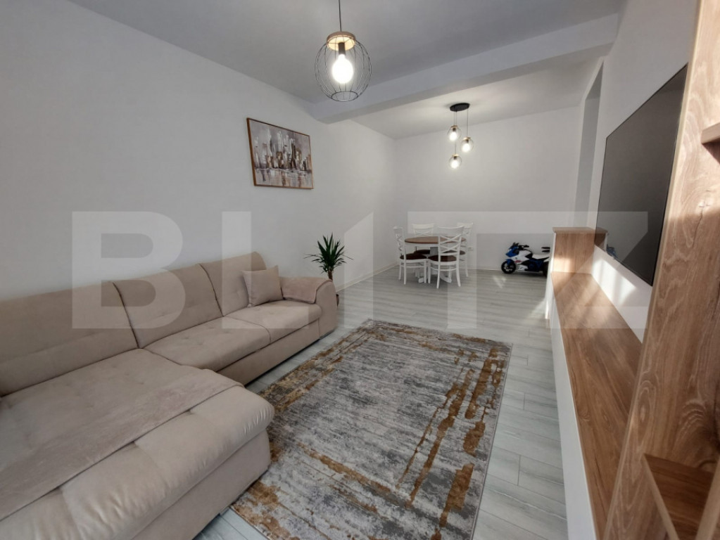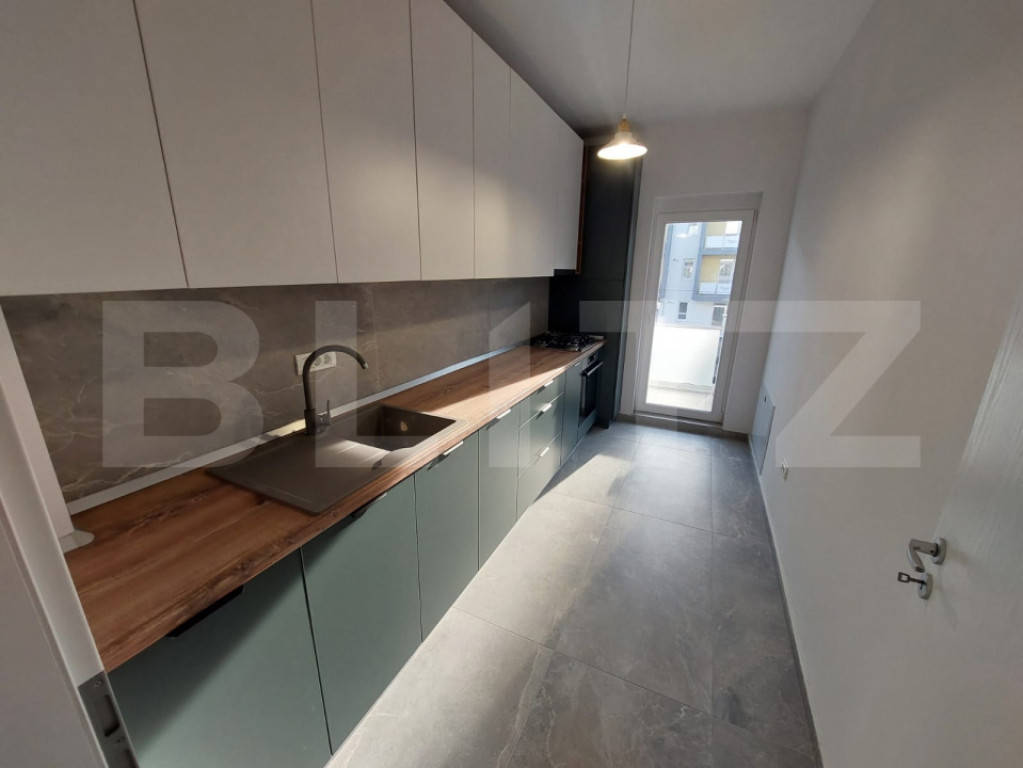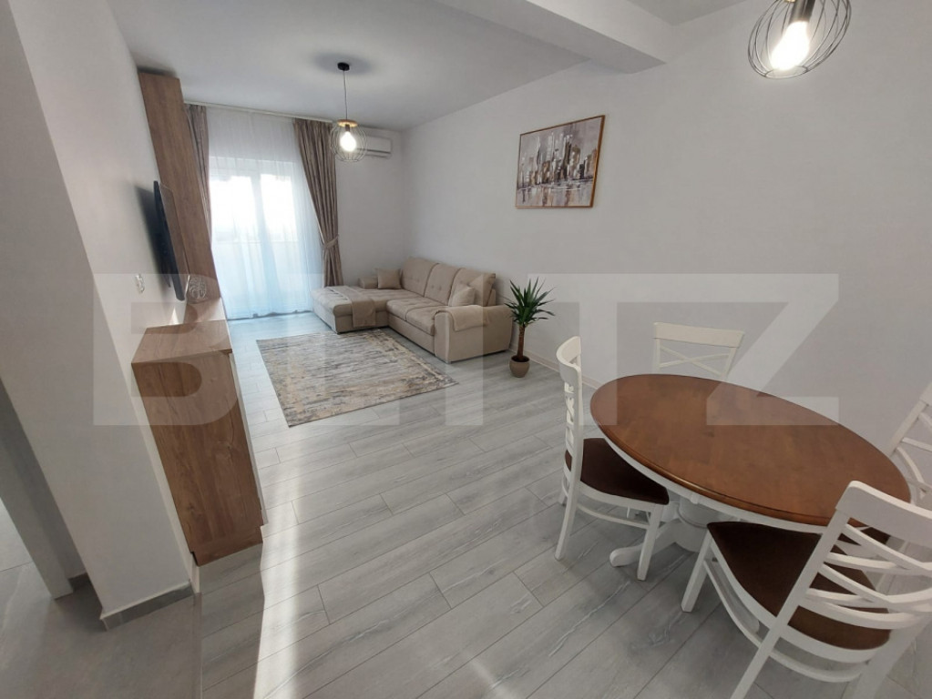 Se oferă spre închiriere apartament modern cu 2 camere, în bloc nou finalizat în 2025, aflat la prima închiriere, cu o suprafață utilă de 54 mp. Apartamentul dispune de un balcon deschis de 10 mp, ideal pentru relaxare. Este complet echipat și oferă un confort ridicat, având încălzire în pardoseală, centrală proprie și aer condiționat de 12.000 BTU. Livingul este dotat cu televizor Smart, iar dormitorul beneficiază de pat matrimonial cu spațiu de depozitare. Bucătăria este utilată cu plită pe gaz și cuptor electric. Imobilul este anvelopat, ceea ce asigură un consum redus de energie. Fumatul este permis doar pe balcon. Nu se acceptă animale de companie. Loc de parcare inclus Prima închiriere Preț: 480 €/lună (ușor negociabil) Garanție: 500 € Cod ofertă / ID BLITZ: P160675 Id intern: P160675