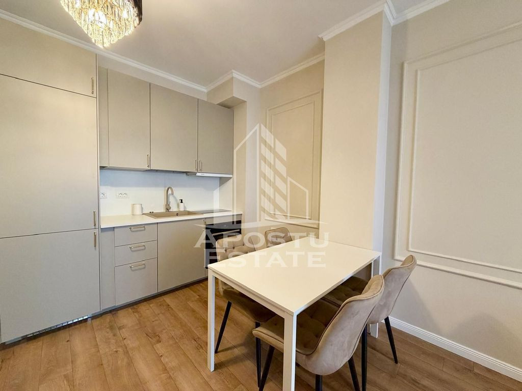 APOSTU ESTATE va ofera spre inchiriere un apartament cu 2 camere, open space la etajul 6 al unui imobil dispus pe 7 niveluri in zona Torontalului(Campeador City). Apartamentul este la prima inchiriere. Imobilul are o suprafata utila de 40 mp si este compartimentat astfel: - hol spatios - living+bucatarie open space utilat si mobilat modern - un dormitor matrimonial - o baie cu cada - balcon deschis Vecinatati: - Metro 2 - Registrul Auto Roman Timis - Ikea - Transport in comun E6 Distante (cu masina): - Iulius Mall - 10 minute - Centru - 16 minute Alte detalii: Apartamentul dispune de masina de spalat rufe si uscator de rufe Confortul termic se realizeaza cu ajutorul centralei pe imobil (incalzire in pardoseala) si al aerului conditionat. Locul de parcare este inclus in pret. Garantia este doua luni de chirie. Va asteptam cu drag la o vizionare! ID intern: CP2819838!
