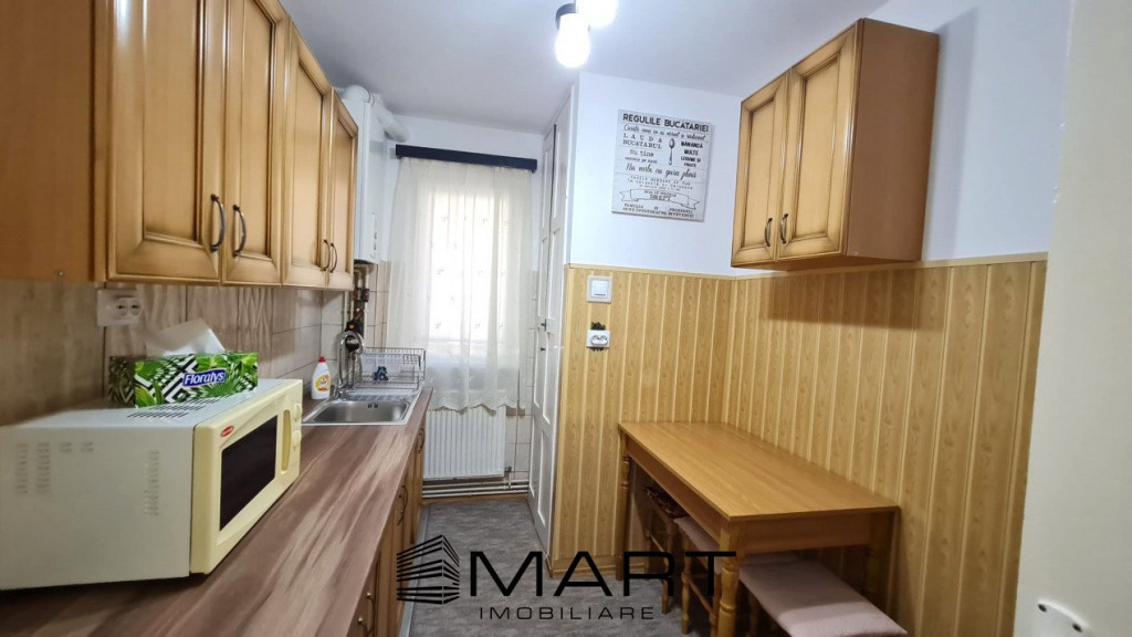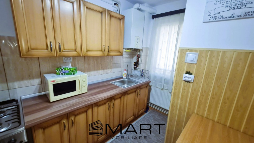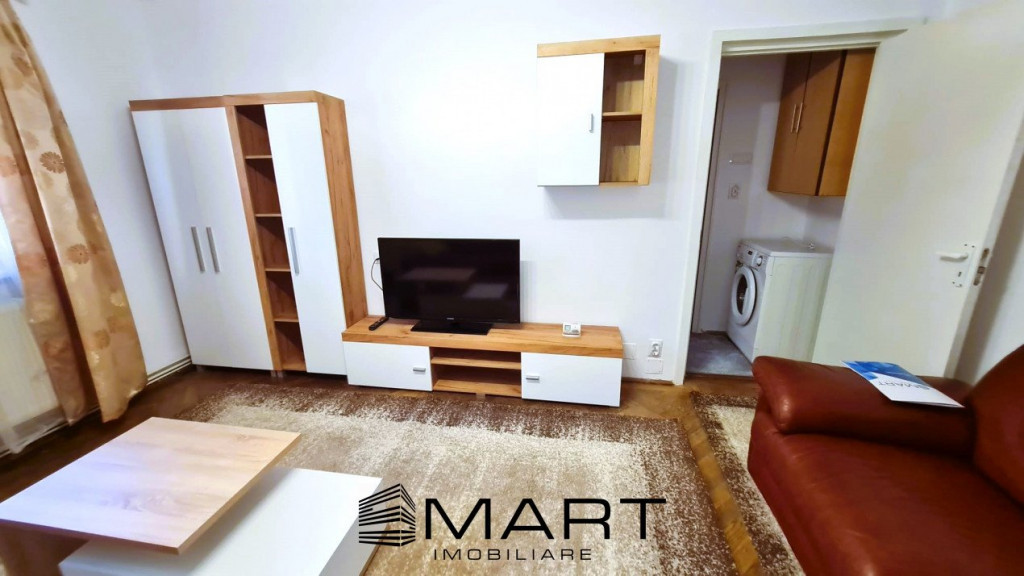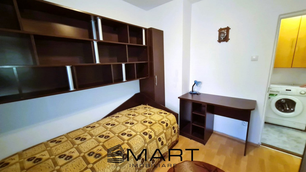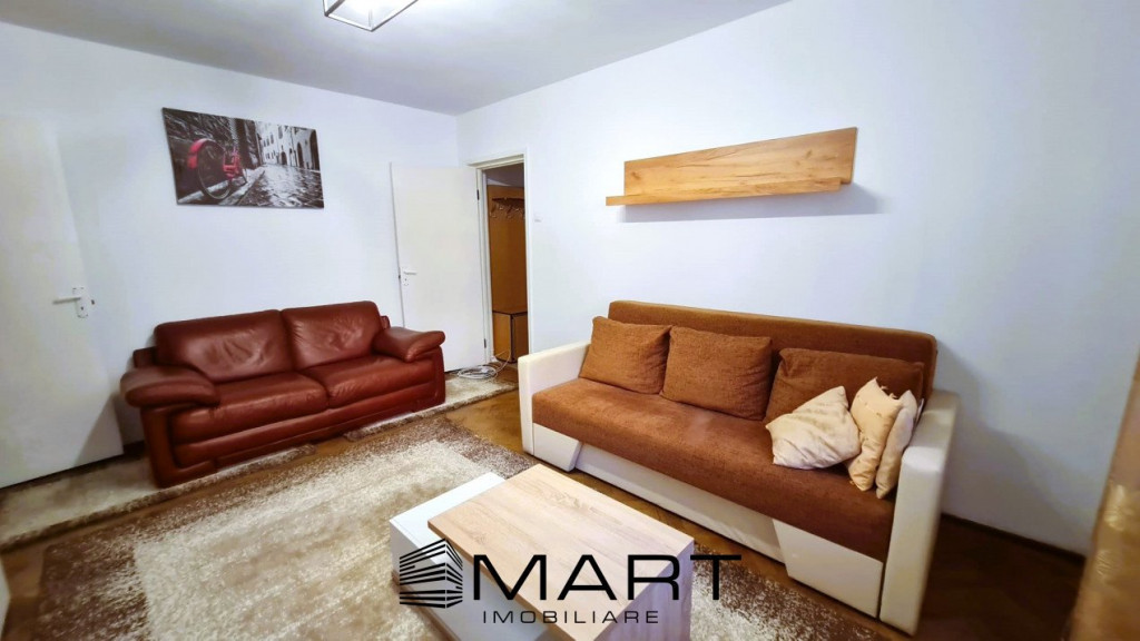 Agentia Smart Imobiliare va propune spre inchiriere un apartament cu 2 camere semidecomandat la parterul unui bloc cu 4 etaje in zona Mihai Viteazul. Apartamentul este recent renovat si complet utilat. Apartamentul are o suprafata utila de 46 mp si este cumpus din 2 holuri, bucatarie inchisa cu debara, living, dormitor si baie. In apropiere se gasesc numeroase magazine, farmacii, banci, scoli, gradinite, loc de joaca si statii de transport in comun. Pentru informatii suplimentare si vizionari specificati agentului ID-ul anuntului: P 16838.