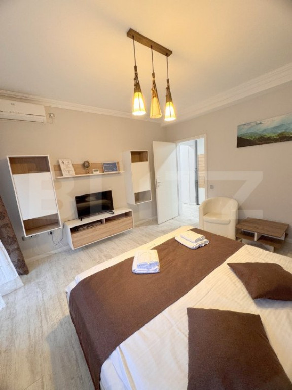 BLITZ vă propune spre vanzare un apartament situat intr-un ansamblu rezidential din cartierul Gheorgheni, zona Iulius Mall/ FSEGA. Apartamentul este situat pe etaj intermediar, etajul 2 din 8. Suprafata utila generoasa de 68 mp are o compartimentare DECOMANDATA, fiind dispusa astfel: - camera de zi, dormitor, bucatarie, baie, sas, hol acces si o terasa in suprafata de 11 mp. Apartamentul se vinde la stadiul de finisat, mobilat si utilat, beneficiaza de centrală termică proprie, cu incalzire prin intermediul caloriferelor, tamplarie termopan PVC si toate instalațiile trase la poziție. In imobil sunt montate 2 unitati aer conditionat. Apartamentul este ideal pentru REGIM HOTELIER si dispune de toate autorizatiile necesare pentru aceasta activitate , conform legislatiei in vigoare, acestea fiind predate prin vanzare viitorului proprietar. Optional se poate opta pentru un loc de parcare si o boxa, contra sumei de 15000 euro. Pentru detalii si vizionare nu ezitati sa ne contacti. Cod ofertă / ID BLITZ: P140661 Id intern: P140661