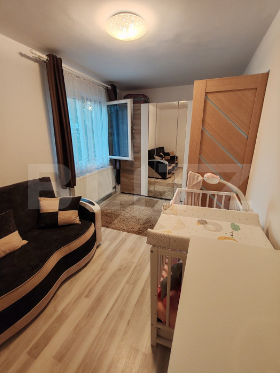 Blitz Imobiliare vă propune spre vânzare un apartament cu 2 camere, cu o suprafață utilă de 38 mp plus 6 mp balcon, situat la parterul unui bloc format din 4 etaje într-o zonă liniștită și verde – Mureșeni. Apartamentul a fost renovat complet, fiind ideal atât pentru locuit, cât și pentru investiție. Caracteristici principale: * Suprafață utilă: 38 mp * Încălzire în pardoseală * Compartimentare eficientă: 2 camere, bucătărie, baie, hol * Balcon închis de 6 mp cu încălzire proprie * Centrala proprie, geamuri termopan moderne, bloc izolat termic - eficiență energetică ridicată * Instalația electrică și țevile au fost înlocuite integral în cadrul renovării din 2022 * Bucătăria și baia sunt complet mobilate și utilate modern, cu electrocasnice și finisaje de calitate * Camerele sunt semimobilate în stil modern, oferind flexibilitate pentru personalizare * Parter - oferă multe opțiuni de folosire Avantaje locație: * Situat în zona Mureșeni, una dintre cele mai verzi și aerisite zone din oraș * Acces rapid către autostradă, ideal pentru navetiști sau deplasări frecvente * În imediata apropiere se găsesc școli, grădinițe, magazine, farmacii, restaurante și alte puncte de interes * Zonă liniștită, cu multă verdeață și spații pentru relaxare Apartamentul este ideal pentru un cuplu, o persoană singură sau pentru investiție în scop de închiriere. Vă așteptăm cu drag la vizionare! Cod ofertă / ID BLITZ: P150602 Id intern: P150602