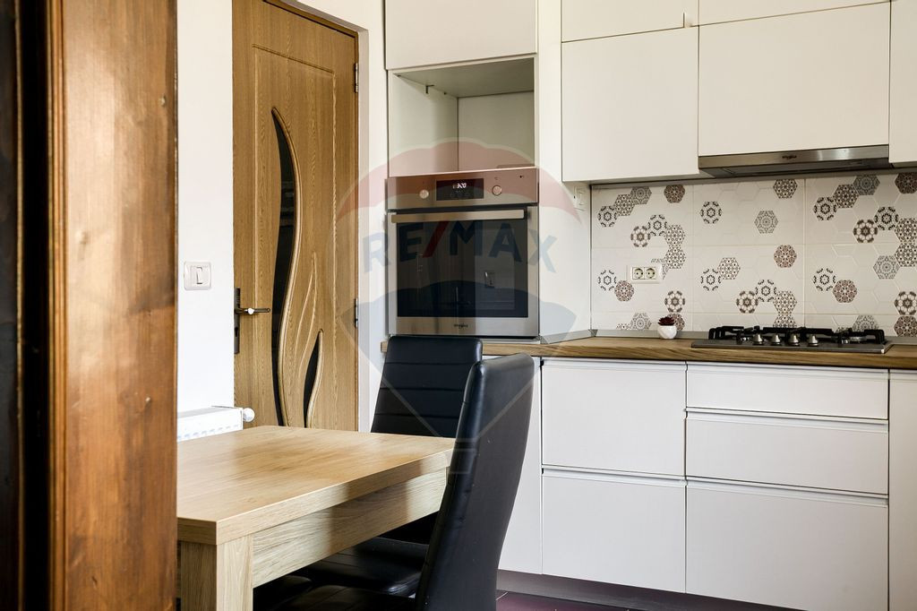 Re/Max Dynamic vă propune spre vânzare, in exclusivitate si fără comision pentru cumpărător un apartament cochet, situat în zona centrală a orașului, într-o curte comună cu doar doi vecini. Are o suprafață de 48 mp înscrisă în CF și beneficiază de cotă parte din teren de 143/550, proprietate personală. Compartimentare: living, dormitor, bucătărie, baie cu geam, debara. Anexe: magazie, pivniță, acces la pod și la curtea comună. Se vinde complet mobilat și utilat cu mobilă modernă și electrocasnice de calitate. Dispune de centrală proprie pe gaz și calorifere. Tavanul a fost coborât și izolat cu vată minerală. Finisaje: parchet laminat, gresie, faianță. Ferestre termopan, exterior izolat cu termosistem pe bază de amporă si finisat cu tencuială structurată. Locuință bine întreținută, ideală atât pentru locuit cât și pentru investiție, într-o zonă bine conectată la oraș. Pentru mai multe detalii sau programarea unei vizionări, vă stăm la dispoziție.