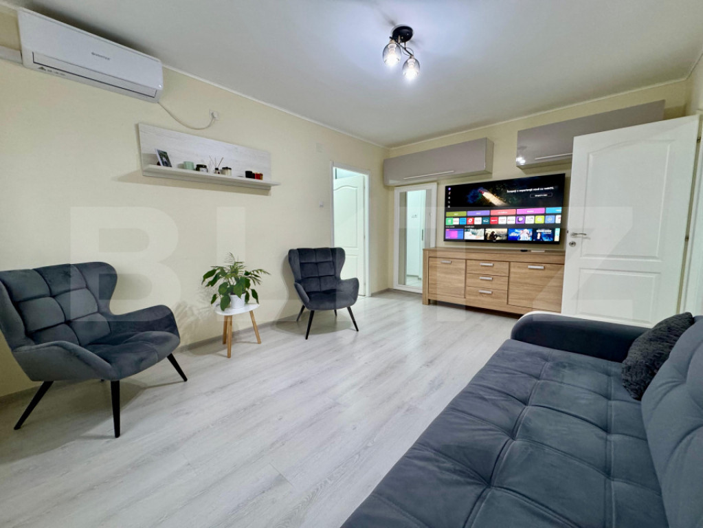 Apartament 2 camere, renovat și mobilat, etaj 2 – zona Ro