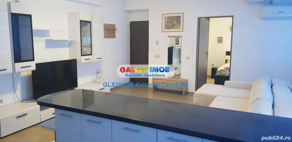 -DOTARI : Apartamentul este mobilat modern, cu mobila noua, facuta pe comanda , cu pat dublu si dressing mare in dormitor, centrala termica proprie cu termostat, aer conditionat, masina de spalat rufe, aspirator, internet si TV. Bucataria moderna, mobilata nou, complet utilata, cu plita electrica cu inductie, cuptor, hota, cuptor cu microunde, sandwich-maker si frigider.