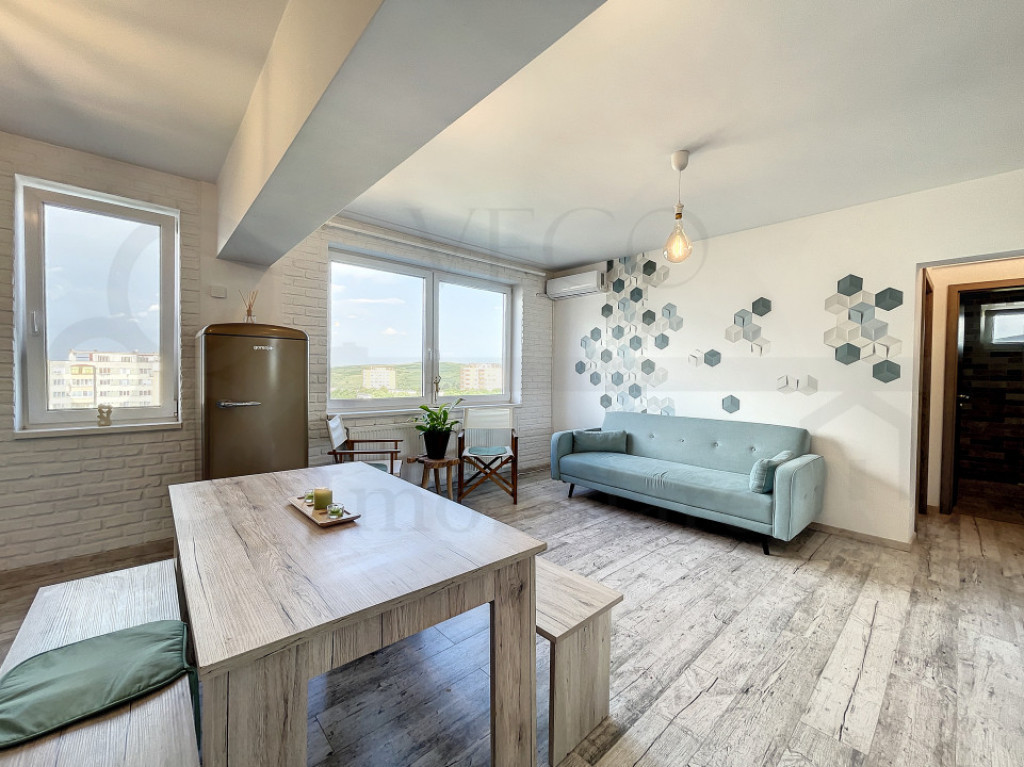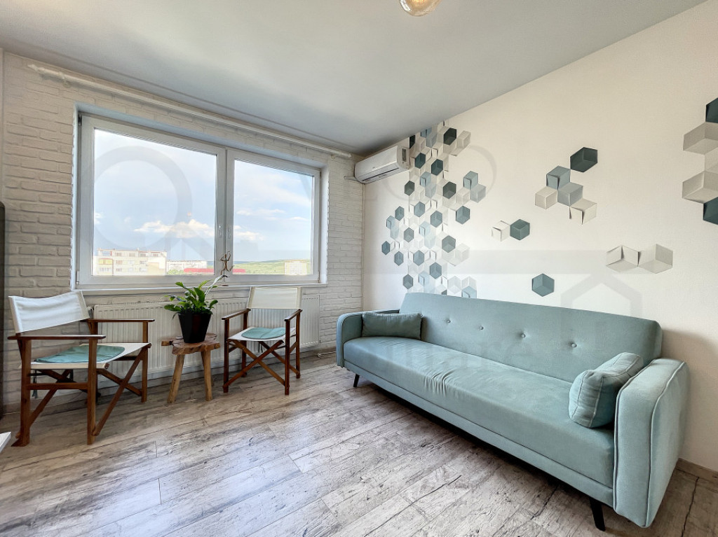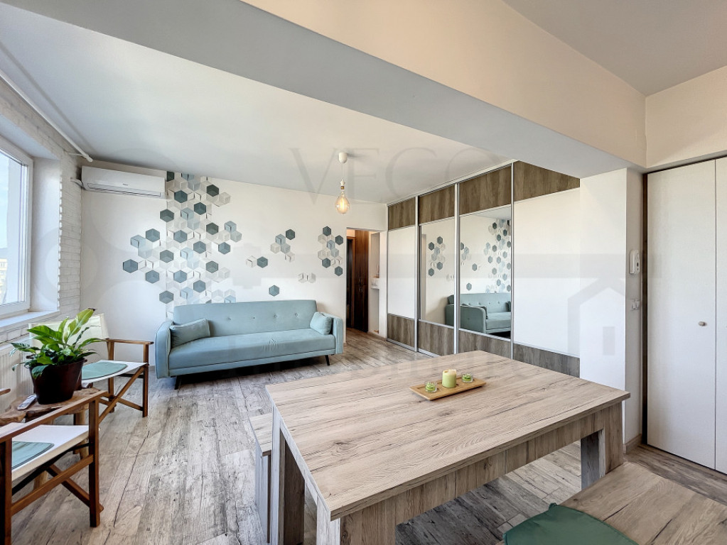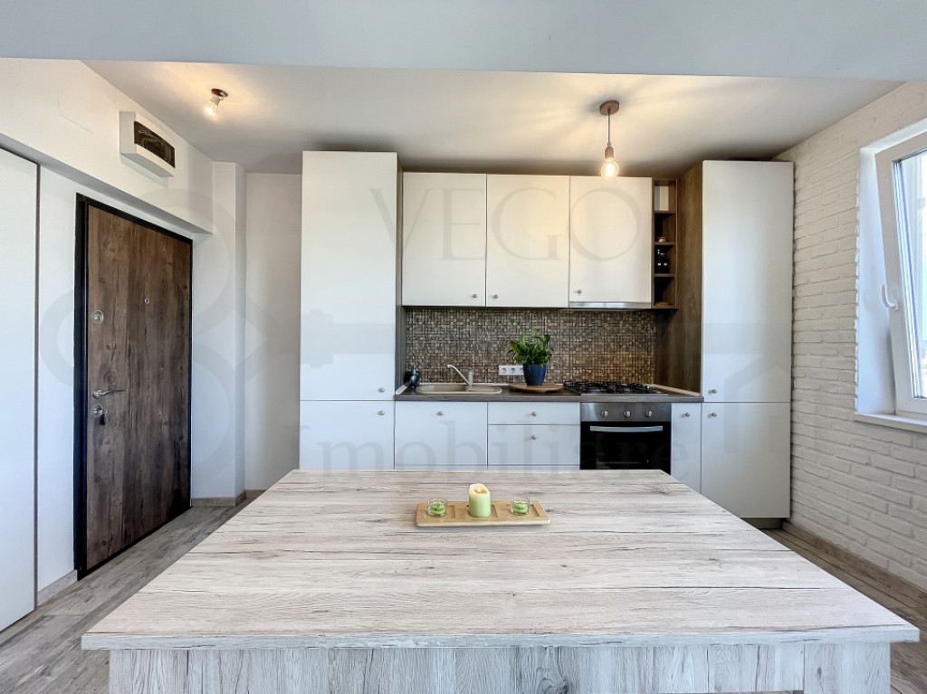 Apartament cu două camere, semidecomandat, complet mobilat și utilat, ideal pentru locuit sau investiție, posibilitate închiriere imediată, în cartierul Gheorgheni, zona străzii Albac. VEGO IMOBILIARE vă prezintă spre vânzare și vă stă la dispoziție cu acest apartament de 2 camere, semidecomandat, poziționat la etajul 10 al unui imobil dispus după regimul de înălțime P+10, oferind o panoramă deosebită asupra împrejurimilor, situat în cartierul Gheorgheni, foarte aproape de Piața Hermes, pe strada Albac, oferind acces facil asupra multor puncte de interes, situat la o distanță de câteva minute de mijloacele de transport în comun, magazine și piață alimentară în proximitatea blocului, farmacii, spații verzi și multe alte obiective importante. Locuința se desfășoară pe o suprafață utilă de 44 mp + un balcon cu o suprafață de 6 mp, se oferă spre vânzare complet finisată, mobilată și utilată. În rândul dotărilor menționăm ferestrele termoizolante cu tâmplărie PVC, pardoseală cu parchet laminat, mașină de spălat rufe, uși interioare din lemn, ușă metalică la intrare, iar confortul termic este oferit de centrala termică individuală și aparatul de aer condiționat. Compartimentarea este semidecomandată, astfel: – 1 cameră de zi + bucătărie open-space, 1 dormitor, 1 baie, 1 balcon închis cu termopan, 1 debara, 1 hol. Preț: 159.000 euro. Pentru orice alte informații, sau pentru stabilirea unei vizionări, nu ezitați să ne contactați, iar un reprezentant al agenției vă stă la dispoziție cu toate detaliile necesare! ID: S344 Id intern: P109718