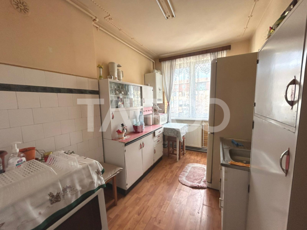 Apartament 2 camere de vanzare, semidecomandat, 45 mp, zona Terezian, Sibiu. Avantaje majore ale acestui apartament: • Pretabil investitie sigura; • Debara; • Balcon; • Etaj intermediar; TABOO Imobiliare propune un apartament de vanzare cu 2 camere, semidecomandat, situat in localitatea Sibiu, zona Terezian, aflat la etajul 3 intr -un imobil tip bloc cu regim de inaltime pe Parter +4 Etaje; anul constructiei 1970, structura caramida. Suprafata utila de 45 mp + balcon de 4 mp. Apartamentul este structurat astfel: • Hol; • Bucatarie; • Baie cu geam; • Living cu balcon; • Dormitor; • Hol intermediar; • Debara cu geam; Finisajele interioare sunt clasice • Usa intrare: metal; • Usi interioare: lemn; • Tamplarie ferestre: pvc, termopan; • Pereti: vopsea lavabila, faianta; • Podele: parchet, gresie. Utilitati si dotari: • Bucatarie: mobilata, utilata; • Mobilat: complet; • Utilitati: curent electric, apa, canalizare, gaz, catv, acces internet, fibra optica; • Izolatii: exterior, bloc izolat termic; • Contorizare: apometre, contor gaz, contor curent electric; • Caracteristici bloc: interfon, acoperis. Apartamentul se vinde mobilat si utilat cu: aragaz, cuptor, masina de spalat rufe, frigider cu congelator. Incalzirea se realizeaza prin centrala proprie cu calorifere. Se accepta ca si modalitate de plata surse proprii sau credit bancar. Pret: 82.000€ Cod ofertă / ID: P25534 Sună-ne acum la 0369.822.820 și află detalii despre această proprietate de vanzare din Sibiu, dar și despre alte proprietăți potrivite pentru tine. Informatii speciale: 1. Descarcă aplicația pe mobilul tau "TABOO Imobiliare" din Apple Store, Google Play sau Huawei AppGallery pentru a afla instantaneu noile proprietăți care intră pe piață. 2. Dacă ai o proprietate pe care vrei să o vinzi sau să o închiriezi, suntem aici pentru tine! Contactează-ne pentru o evaluare gratuită fără obligații și vei descoperi avantajele de a lucra cu o echipă dedicată și experimentată. 3. Dacă vrei sa incepi o cariera de agent imobiliar, suna la 0369.822.820 si programeaza o intalnire pentru a afla toate beneficiile si avantajele. Intră pe TABOO.ro și descoperă cele mai recente oferte, actualizate zilnic. Anunt actualizat in 4 decembrie 2025. Id intern: P25534