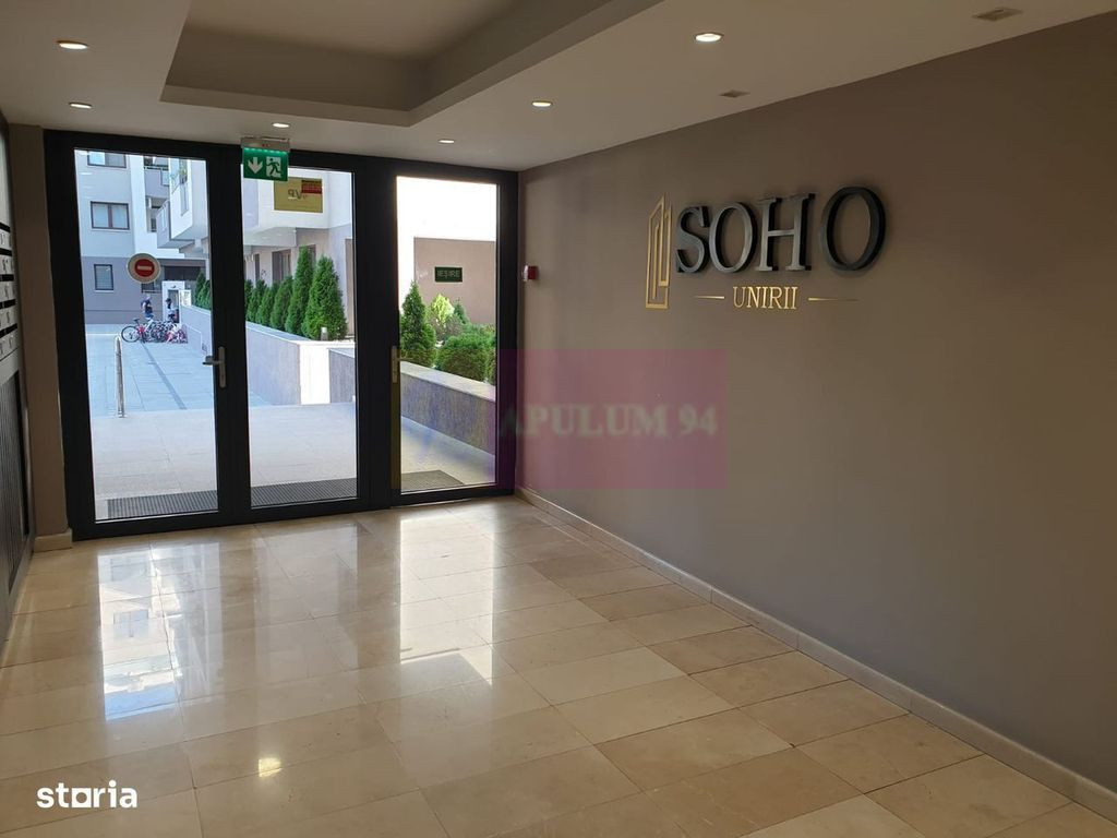 Agentia Apulum 94, va propune spre vanzare un apartament cu 2 camere situat in ansamblul Soho Unirii, la parter.Se vinde mobilat si utilat. Suprafata utila este de 59,39mp, zona de living + bucataria deschisa are 33mp iar dormitorul are 16mp. Mentionez ca nu exista  balcon. Incalzirea se face prin pardoseala, cu centrala de bloc.La subsol este parcarea subterana pe doua nivele, parterul fiind inalt.  Ansamblul este format din 3 blocuri cu o curte interioara generoasa, toate intrarile sunt gated, accesul facandu-se doar pe baza de cartela. In incinta este prezent intotdeauna un paznic. Parterul este mai inalt ca restul etajelor, inaltimea camerelor fiind de 2.75cm. Localizarea este centrala, se ajunge in centrul vechi in 15 min pe jos. In 10 minute la metroul de la Unirea, in 6 min la metroul Tineretului si aprox 8 min pana la metroul Timpuri Noi. Zona e foarte linistita si ferita de zgomotul orasului.