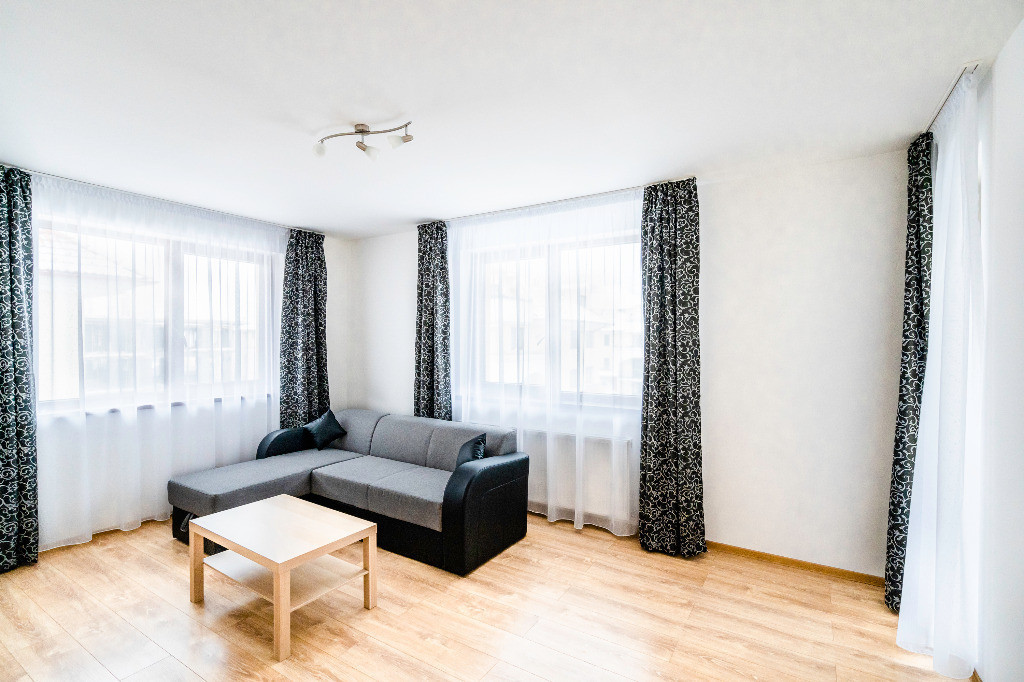 Oferim spre inchiriere, direct de la proprietari fara intermediari si comisioane extra, un apartament nou cu 2 camere, decomandat, complet mobilat si utilat. Apartamentul este spatios, luminos si calduros (facturi reduse iarna) situat intr-un blog tip vila la etajul 2 din 3 in complexul imbobiliar Imperial Residence 2 (in zona Tractorul - Coresi Mall) Aceasta este o zona rezidentiala linistita cu limita de inaltime la constructii (fara blocuri turn). Nu se accepta animale de companie sau funatul in interiorul apartamentului. Perioada minima a contractului de inchiriere este de un an. Se percepe garantie contravaloarea a 2 luni de chirie care se va returna la finalul contractului. Un loc de parcare supra-teran este inclus. Optional un loc de parcare suplimentar este disponibil pentru inchiriere la sub-teran (pret 250 lei). Nu acceptam intermediari sau sub-inchiriere in regim hotelier.