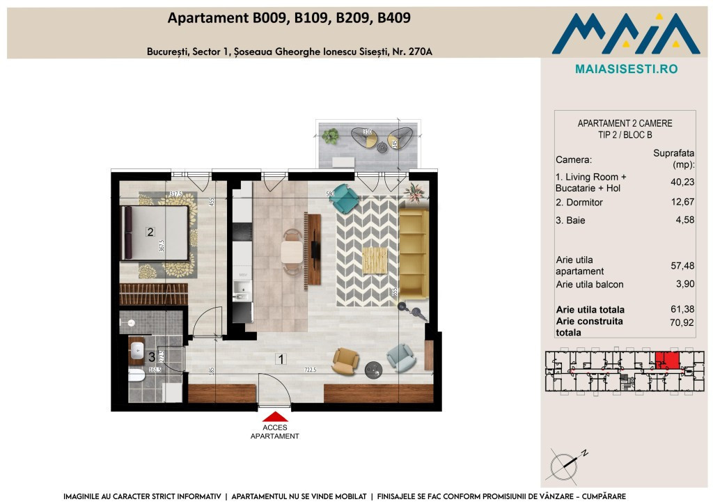 Preturile afisate sunt promotionale, valabile pana la data de 14 Decembrie 2025 pentru un avans de 50% si diferenta in transe pana la predarea apartamentului. Acestea sunt fara TVA si cu predare la stadiul semifinisat | Costul finisajelor este de 150 EUR fara TVA pe mp construit. Avem plăcerea să vă prezentăm oportunitatea de a achiziționa un apartament în proiectul rezidențial Maia Sisesti, faza a 2-a, situat pe Soseaua Gheorghe Ionescu Sisesti, la doar 350 de metri de Stația de metrou Straulesti. În cadrul ansamblului rezidențial Maia Sisesti, vă oferim un mix variat de apartamente cu 1, 2, 3 și 4 camere, fiecare cu avantajele lor specifice. Astfel, putem răspunde nevoilor și preferințelor tuturor clienților noștri. Indiferent dacă căutați un spațiu confortabil pentru un singur locuitor sau o locuință mai generoasă pentru o familie, veți găsi aici soluția ideală pentru dumneavoastră. Fiecare tip de apartament este proiectat cu atenție la detalii și finisaje de calitate superioară, oferindu-vă confort și bunăstare în noua voastră casă. Dotari ansamblu: - Ansamblul rezidențial va beneficia de ascensoare Schindler în fiecare corp de clădire, pentru acces facil. - Spațiile verzi amenajate vor oferi un mediu plăcut și relaxant în jurul blocurilor. - Casa scării și spațiile comune vor fi finisate modern, oferind un aspect primitor și estetic plăcut. Finisaje fixe: - Finisajele interioare vor asigura confort termic și acustic, permițându-vă să vă bucurați de intimitate și liniște. - Centrala termică și instalație termică pentru confort termic și apă caldă. - Ușa de intrare va fi din metal, imbracată în MDF, asigurând siguranță și izolare termică. - Tamplaria PVC cu geam termopan va asigura izolare termică și fonică eficientă. - Obiecte sanitare de calitate superioară pentru băi elegante și funcționale. - Gletul și șapele aplicate vor pregăti apartamentul pentru finisaje suplimentare. - Conexiunea pentru telefonie, internet și cablu TV va asigura conectivitatea dorită. - Instalația electrică. Finisaje la alegere (diverse modele): Pentru a vă personaliza apartamentul după preferințele dumneavoastră, puteți opta pentru finisaje opționale, cum ar fi: - Parchet laminat din aproximativ 10 modele disponibile. - Gresie și faianță în 3 variante, pentru un aspect modern și rafinat. - Uși interioare, cu diverse modele și culori, pentru a completa designul interior. Bransamente: Blocurile vor fi bransate la energie electrică, gaze naturale, apă și canalizare, oferind toate utilitățile necesare pentru a satisface nevoile rezidenților. De asemenea, locatarii vor avea acces la servicii de cablu, internet și telefonie, asigurând conectivitate și comunicare fără întreruperi. Parcari: Ansamblul beneficiază de facilități de parcare moderne. Acestea se regasesc la nivelul subsolurilor si demisolurilor celor doua corpuri si sunt contra cost. Preturile si diponibilitatile pot fi accesate oricand pe site-ul proiectului (maiasisesti*ro). Avantaje ale locației: - Acces facil la stația de metrou Straulesti, la doar 350 de metri distanță. - În apropiere se găsesc numeroase școli, grădinițe și unități de învățământ, precum și facilități recreative și de divertisment, cum ar fi Parcul Dendrologic Chitila și Palatul Mogoșoaia. - Enayati Medical City si Spitalul Regina Maria Băneasa asigură servicii de sănătate de calitate. - Diverse opțiuni de shopping în apropiere, inclusiv Băneasa Shopping City și Colosseum Mall. Transport - Statia de metrou Straulesti (350 m); - Statia de autobuz "Bucuresti Targoviste" [205]; - Statia de autobuz "2 Cocosi" [204, 304, 436]; - Aeroportul Aurel Vlaicu; Scoli si gradinite - Scoala/Gradinita Aletheea; - Scoala/Gradinita internationala Matei; - Scoala gimnaziala, Nr. 13; - Scoala gimnaziala, Nr. 6; - Scoala gimnaziala, Nr. 1; Recreere & Entertainment - Parcul Dendrologic Chitila; - Parcul Mogoşoaia; - Palatul Mogoşoaia; - Parcul Bazilescu; - Parcul Regele Mihai I al României. Ingrijire si sanatate - Spitalul Regina Maria Băneasa; - Enayati Medical City; Shopping - Băneasa Shopping City; - Colosseum Mall; - Mega Image Shop & Go; - Kaufland Straulesti, etc. Nu ratați această oportunitate de a vă achiziționa un apartament nou într-o zonă în dezvoltare rapidă, cu acces facil la metrou și numeroase facilități în jur. Pentru mai multe informații și pentru a programa o vizionare, vă rugăm să ne contactați la numărul de telefon 0799008822 sau să vizitați site-ul proiectului pe maiasisesti*ro.