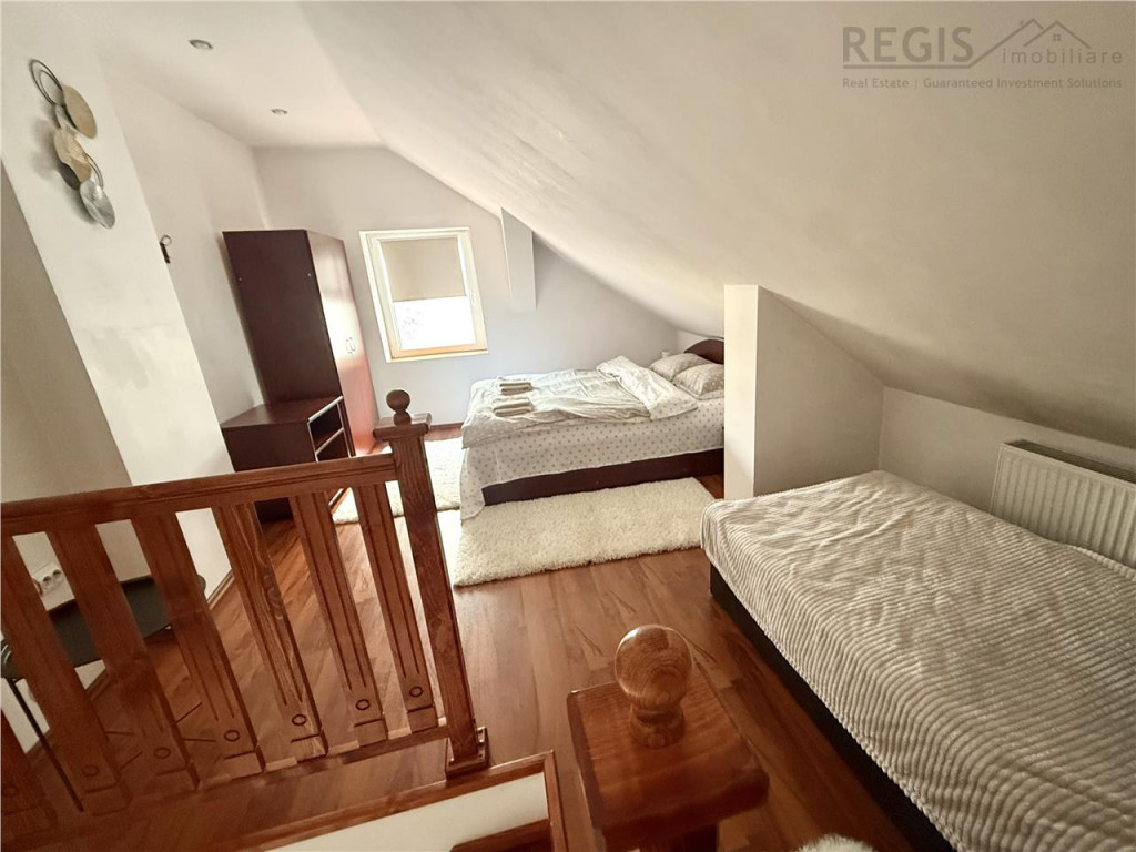 ID: 6082 Regis Imobiliare va propune spre inchiriere un apartament deosebit, tip duplex, cu 2 camere, situat in Centrul Vechi al Brasovului, cu vedere spectaculoasa spre Tampa. O locuinta cu personalitate, perfecta pentru cei care apreciaza farmecul zonei istorice si confortul modern. Apartamentul este dispus pe doua niveluri, oferind o compartimentare practica si o atmosfera calda si primitoare. Compartimentare: - Parter: living generos, bucatarie complet mobilata si utilata, baie cu dus - Etaj: dormitor luminos, ideal pentru relaxare Facilitati: - Mobilat si utilat complet ndash; gata de mutare - Privire directa spre Tampa - Cladire pozitionata excelent Conditii de inchiriere: - Inchiriere pe termen lung (minim 1 an) - Plata: o luna in avans o luna garantie - Disponibil imediat Locatie deosebita, in inima orasului vechi, la doar cativa pasi de Piata Sfatului, inconjurata de restaurante cochete, cafenele, baruri, parcuri si scoli, cu acces facil la toate punctele de interes din oras. Pentru detalii suplimentare sau pentru a programa o vizionare, va stam cu drag la dispozitie. Comisionul agentiei este de 50% TVA din prima chirie. Andreea, Consultant Imobiliar