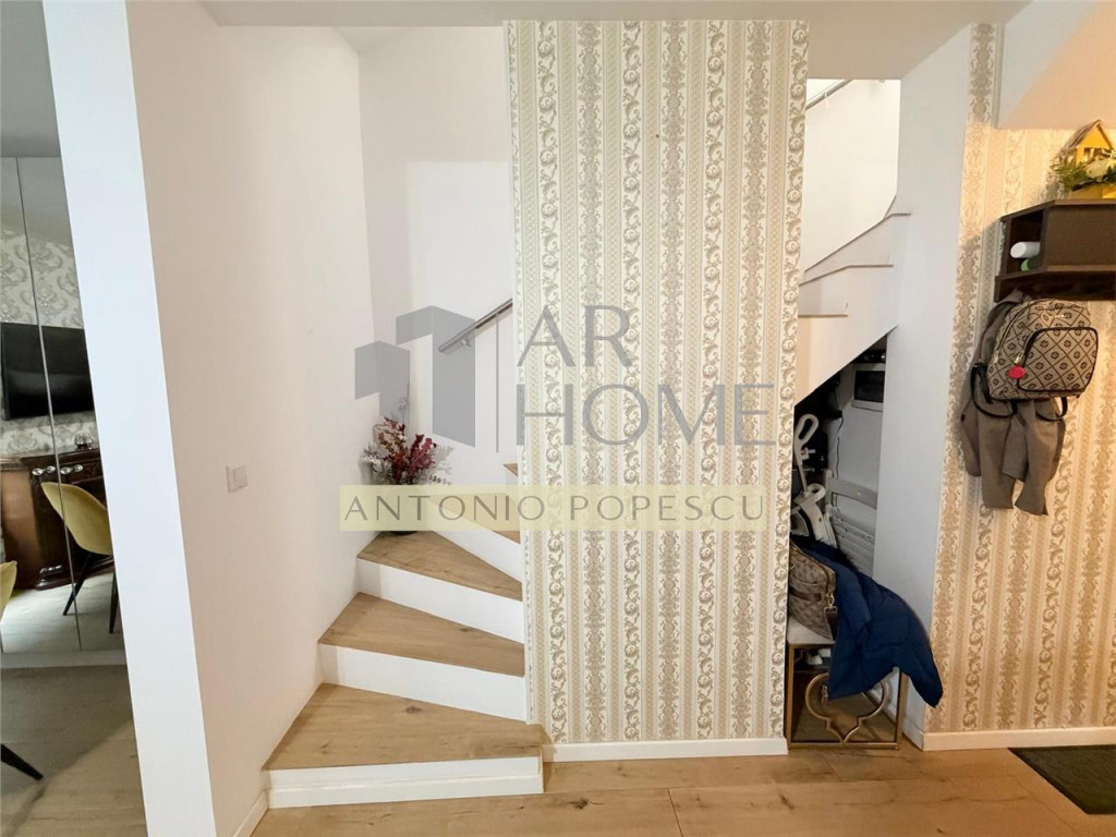 Inchiriere apartament 2 camere, curte proprie, in Ploiesti, zona centrala situat la parterul si etajul unu al unui imobil cu regimul de inaltime S P 2. Imobilul este construit in anul 2020 si are ca vecinatati Lidl, mijloace de transport in comun, gradinita, scoala etc. Are o suprafata utila de 52 mp, terase 11 mp, curte 20 mp compartimentat astfel: Parter: terasa intrare, hol, bucatarie, grup sanitar, living, terasa, curte si casa scarii: Etaj 1: dotmitor matrimonial cu baie proprie; Dotari: loc de parcare subteran, loc de parcare suprateran, teren imprejmuit cu gard, usa intrare metalica, usi interioare celulare MDF, tamplarie PVC cu geam tripan, centrala termica proprie, incalzire in pardoseala, gresie, faianta, travertin, parchet laminat, vopsea lavabila etc. Se inchiriaza complet mobilat si utilat cu plita pe gaz, cuptor electric, hota, cuptor cu microunde, combina frigorifica, masina de spalat vase/ rufe, aparate de aer conditionat, smart TV etc. Pret: 550 euro.