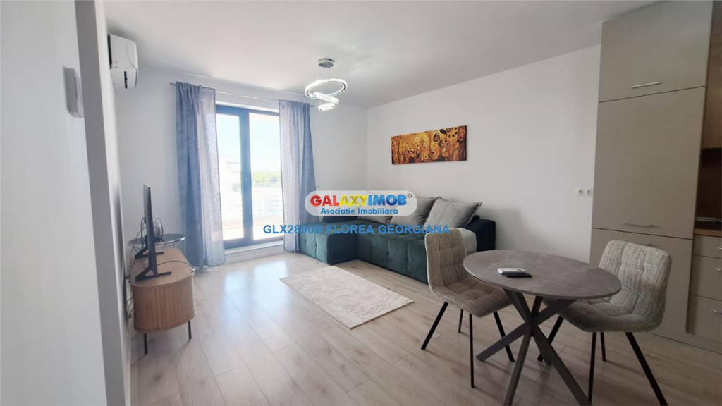 Studio-ul beneficiaza de o vedere frumoasa, fiind luminos si primitor. Este complet mobilat si utilat modern, cu finisaje premium si dotari de top: