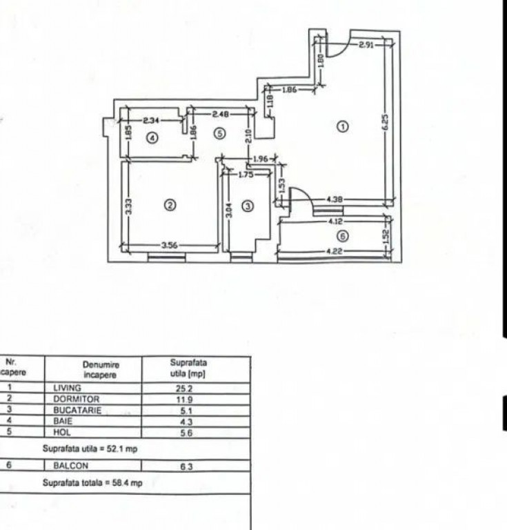 Suprafața utilă 52 m²