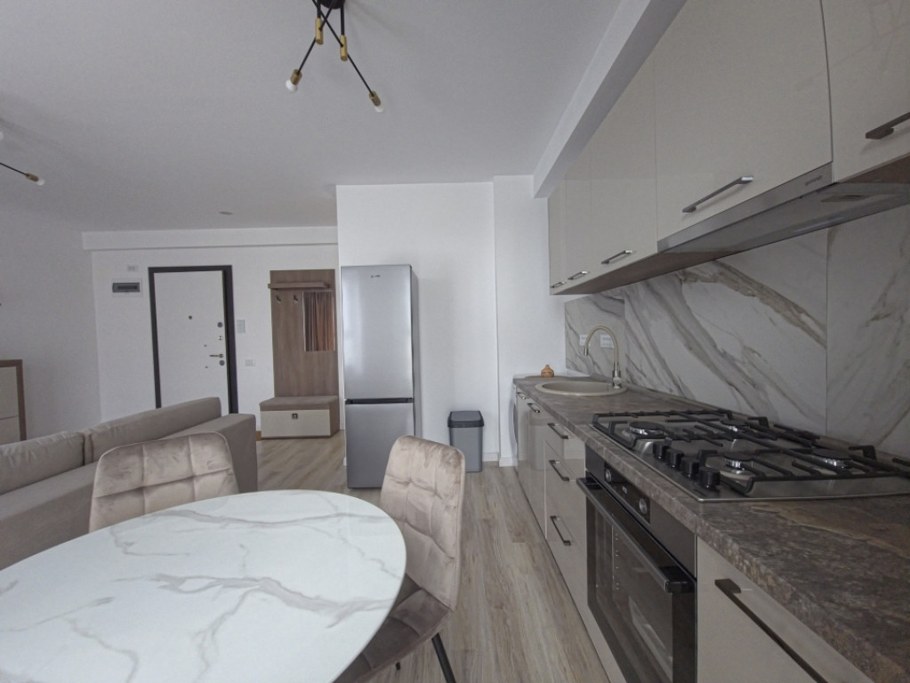 Haus Imobiliare vă propune spre vânzare un apartament cu 2 camere, cu bucătărie open-space cu living, situat în zona Tomis Plus, la etajul 3 din 5, într-un bloc nou, prevăzut cu lift, aflat în faza finală de recepție, cu recepția finală estimată în maximum o lună. Blocul este locuit în proporție de aproximativ 80%, iar toate utilitățile sunt funcționale, oferind condiții optime pentru mutare imediată. Apartamentul este complet mobilat și utilat, cu mobilier și electrocasnice NOI, nefolosite, fiind ideal atât pentru locuire, cât și pentru investiție. Zona de zi este modernă și bine compartimentată, livingul fiind integrat cu bucătăria în sistem open-space, creând un spațiu aerisit și luminos. Bucătăria este complet echipată cu combina frigorifică, mașină de spălat rufe cu uscător integrat, plită, hotă, precum și TV Samsung, toate electrocasnicele fiind marca Gorenje, oferind fiabilitate și un design modern. Confortul termic este asigurat prin centrală termică proprie și încălzire în pardoseală, iar finisajele sunt de calitate superioară, atent alese. TVA inclus în preț În cazul achiziției pe societate comercială, TVA-ul se deduce din preț Posibilitate de achiziție separată a unui loc de parcare în subteran Zona Tomis Plus rămâne una dintre cele mai căutate zone rezidențiale din Constanța, cu acces rapid către centre comerciale, școli, grădinițe și mijloace de transport. Pentru detalii suplimentare și programarea unei vizionări, echipa Haus Imobiliare vă stă la dispoziție. Id intern: P226735