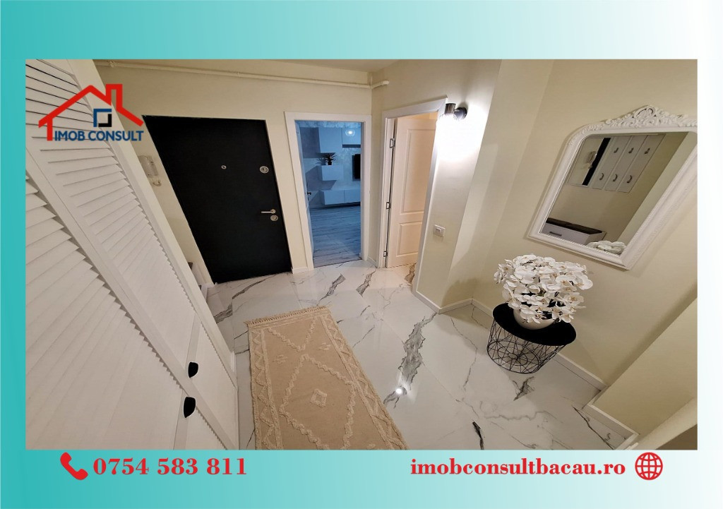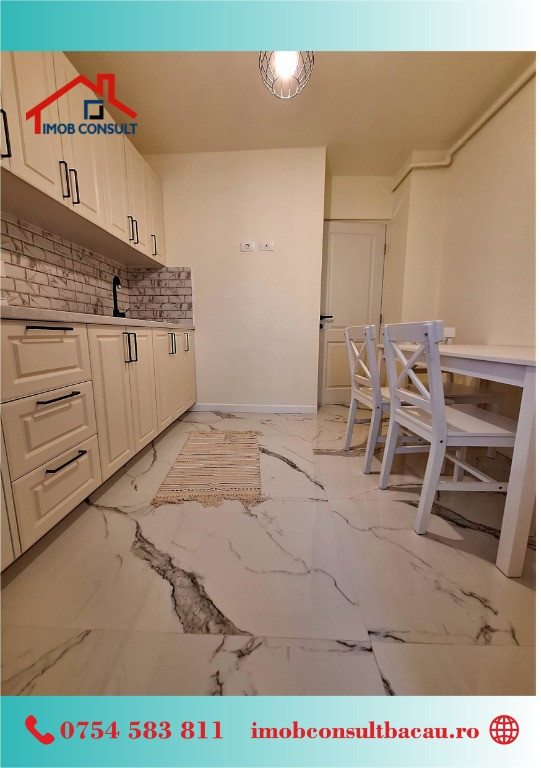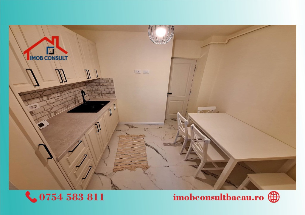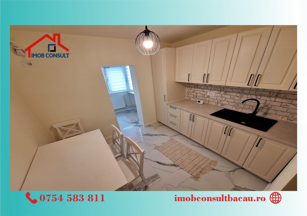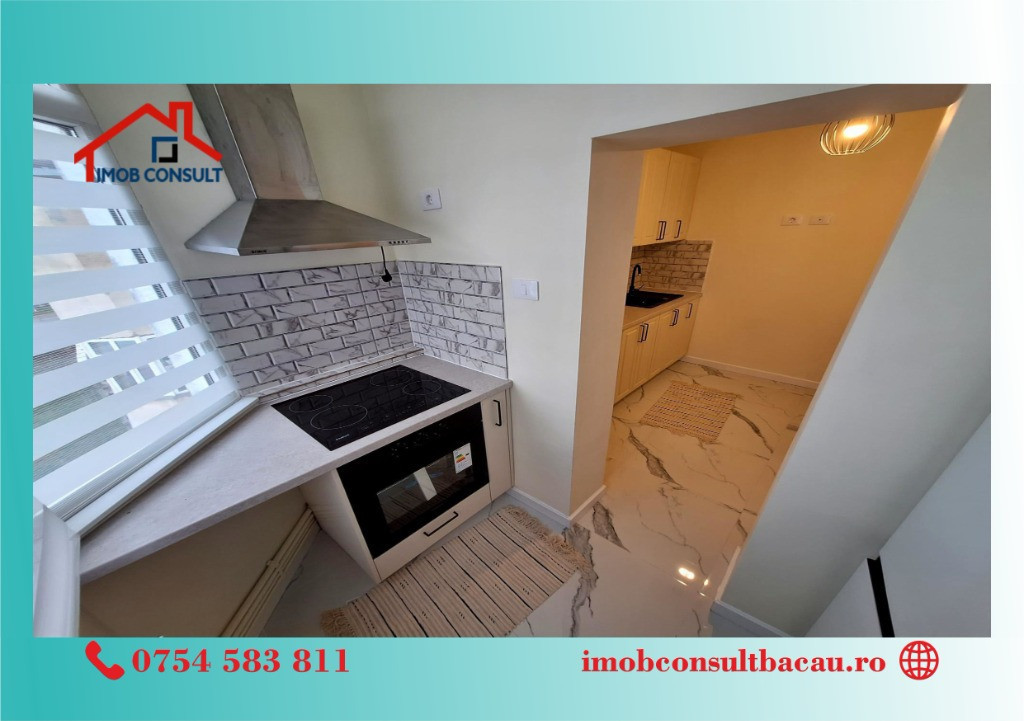 Echipa Imob Consult Bacau vă prezinta spre închiriere un apartament cu 2 camere decomandat, situat în zona Ștefan cel Mare – Lidl, într-un bloc izolat termic, construit în 1986. Proprietatea se află la etajul 4, beneficiind de o compartimentare eficientă, lumină naturală abundentă și finisaje moderne, de înaltă calitate. Detalii și facilități: • Apartament complet renovat, totul este nou, cu design contemporan și atenție la detalii; • Hol generos, ce oferă acces facil către toate încăperile; • Balcon închis, perfect pentru relaxare sau spațiu suplimentar de depozitare; • Mobilat complet cu piese noi, moderne și funcționale; • Utilat integral cu electrocasnice de ultimă generație – frigider, mașină de spălat, cuptor, plită, hotă, TV, aspirator etc.; • Centrala termică proprie, pentru confort și eficiență energetică ridicată; • Aer condiționat și uscător de rufe incluse; • Bloc curat, îngrijit, cu vecini civilizați și acces securizat. Locație: Apartamentul este situat într-o zonă excelentă, Ștefan cel Mare – Lidl, cu acces rapid către mijloace de transport în comun. În proximitate se găsesc hypermarketuri (LIDL, SUPECO), ARENA MALL, restaurante, farmacii, bănci, școli, parcuri și alte facilități urbane esențiale. Un apartament elegant, luminos și primitor – ideal pentru o persoană sau un cuplu care apreciază confortul si calitatea. Contactează-ne pentru detalii și programarea unei vizionări! Ne gasesti la nr. de tel: - Cosmin: 0754 583 811; - Corina: 0740 288 297, sau la sediul agenției noastre, Imob Consult Bacau, situat pe strada Banca Națională nr. 27 la intersecția cu Str. Neagoe Vodă, langa Irish Pub.