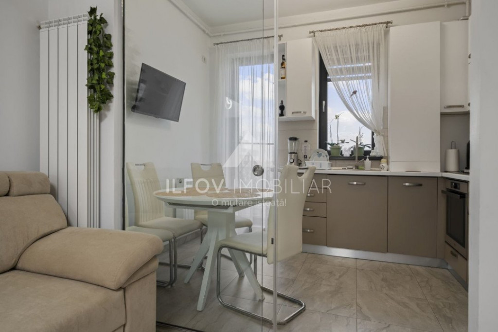 ILFOV IMOBILIAR - "O mutare isteata!" TUNARI – ȘOS. 1 DECEMBRIE – APARTAMENT 2 CAMERE, 52,22 MP, FOARTE ÎNGRIJIT, PARȚIAL MOBILAT ȘI UTILAT, LOC PARCARE PREȚ: 109.000 EURO REDUS LA 103.900 EURO Așa cum v-am obișnuit, COMISION 0! Blocul este amplasat în Tunari, la intersecția Străzii Primăverii cu Șoseaua 1 Decembrie, într-o zonă cu acces direct către Pipera, DN1 și autostrada A3. La parterul blocului se află magazinul Mega Image, iar vis-a-vis de bloc se află Amber Gardens, unul dintre cele mai cunoscute ansambluri rezidențiale din nordul Capitalei. Strada Primăverii este asfaltată, lată, are iluminat stradal și este prevăzută cu trotuare pe ambele sensuri. Stația de transport public se află la doar 30 m de bloc. Pentru iubitorii de natura padurea este la 3 minute de bloc si poate fi admirata din balcon. Apartamentul se află la etajul 2 din 2, într-un bloc foarte îngrijit, cu asociație de locatari înființată. Construit din cărămidă Porotherm și izolat la exterior cu polistiren de 10 cm. Suprafața totală a apartamentului este de 52,22 mp, iar suprafața utilă este de 47,2 mp. Balconul are 5,02 mp, cu acces atât din bucătărie, cât și din dormitor. Loc de parcare inclus în prețul apartamentului. La interior regăsim: - 2 aparate de aer condiționat - Centrală proprie Saunier Duval, cu încălzire pe radiatoare - Tâmplărie PVC - Ușă metalică la intrare Se vinde parțial mobilat și utilat, exceptând electrocasnicele mici și televizoarele. Poziționarea centrală în bloc oferă o eficiență termică foarte bună. Programeaza o vizionare! Oferim broker pentru obținerea unui eventual credit imobiliar. Dacă doriți o colaborare cu agenția noastră, ne puteți scrie pe adresa de e-mail sau vă așteptăm la sediul din Otopeni, Str. 23 August, nr. 152A, Ilfov. Contact: [email protected] 0733 041 859 Costin Ștefan – Broker/Owner Id intern: P320