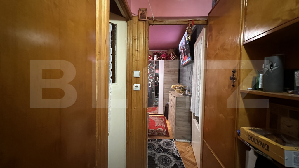 Blitz propune spre vânzare acest apartament cu 2 camere, tip T, semidecomandat. Apartamentul se vinde gol, gata să fie pus la punct și personalizat de următorul proprietar. Etaj 4/4, bloc cu acoperiș de țiglă, de asemenea în pod, cei de la etajul 4 au acces pt spațiu de depozitare, dacă se dorește. Zona e una foarte liniștită. Scara renovata, geamuri termopane pe casa scării. Vă aștept la vizionare! Cod ofertă / ID BLITZ: P163742 Id intern: P163742