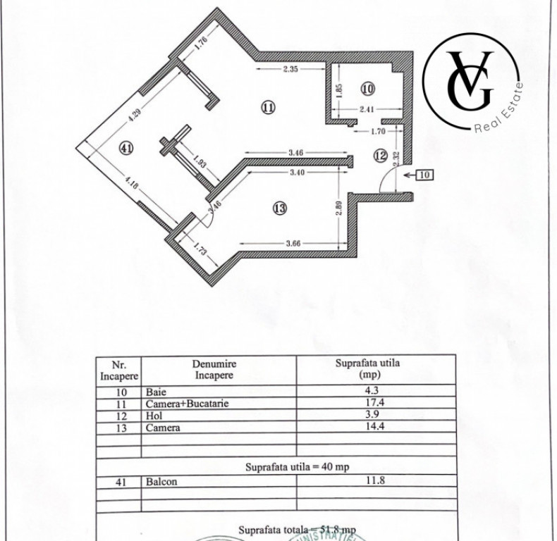 Suprafața utilă 40 m²