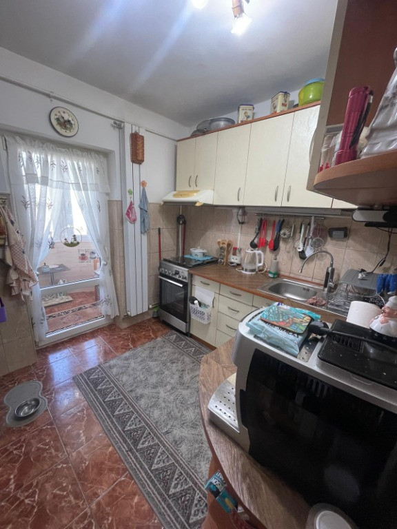 Apartament 2 camere zona Banu Maracine: este situat in zona centrala, in apropiere de diverse superamketuri, diverse institutii bancare/medicale, la cca 10 minute de facultatea de medicina, la etajul 4/4, suprafata, confort 1 sporit, suprafata utila 53 mp. Apartament 2 camere zona Banu Maracine: dispune de hol spatios, bucatarie cu balcon inchis in termopan, baia spatioasa cu geam, doua camere, decomandat total. Mobilat/utila, bolier pentru apaa calda, peretii exteriori izolati, incalzire de la CET ( apartamentul foarte calduros, iarna cca 26 de grade inauntru) calorifere noi, parchetul din lemn masiv foarte bine intretinut, geamuri tamplarie PVC cu rolete, gresie/faianta in hol, baie si bucatarie, clime in ambele camere.