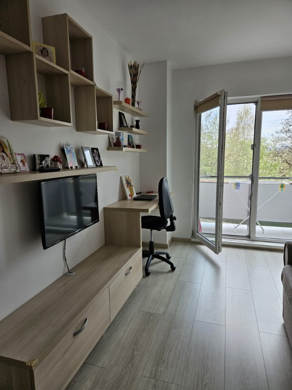 Apartament de vanzare cu 2 camere in zona BMW- situat in bloc nou Apartamentul este situat la etaj intermediar, in suprafata de 57mp la care se adauga un balcon. Zona este linistaita si foarte aproape de mijloacele de transport in comun si magazine. Apartamentul este finisat modern si este utilat complet. Dispune de un loc de parcare exterior Pretul este de 150000 euro