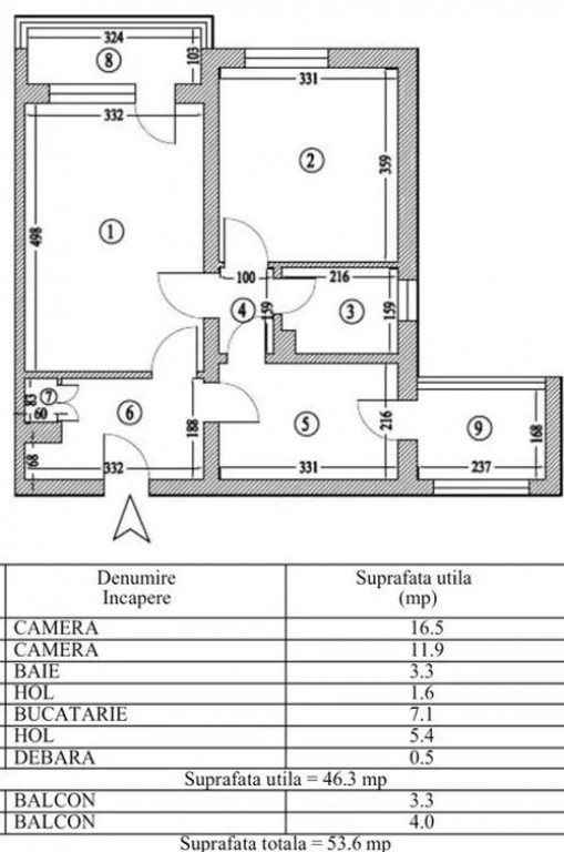 Suprafața utilă 54 m²