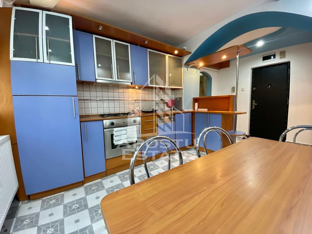 APOSTU ESTATE va propune spre inchiriere un apartament cu 2 camere, situat intr-o zona bine conectata si apreciata – zona Modern, in apropiere de centrul orasului, Facultatea de Medicina si multiple mijloace de transport in comun. Ideal pentru studenti, tineri profesionisti sau persoane care doresc confort si acces rapid la facilitati urbane importante. Suprafata utila: 55 mp Compartimentare: semidecomandata -Hol de acces; -Bucatarie complet mobilata si utilata (aragaz, masina de spalat vase, frigider); -Sufragerie spatioasa; -Dormitor luminos; -Baie cu cada; Dotari esentiale: -Centrala termica proprie; -Aer conditionat in fiecare camera; -Jaluzele electrice; Etaj: Parter Perioada minima de inchiriere: 12 luni Localizare excelenta – la doar cateva minute de mers fata de UMF, centrul orasului, mijloace de transport in comun, supermarketuri si zone verzi. Ideal pentru: Studenti Cupluri Tineri profesionisti Pret chirie: 420 € + garantie Programeaza o vizionare! Apartamentul este complet mobilat si utilat, gata pentru a fi locuit! ID INTERN : CP2650857