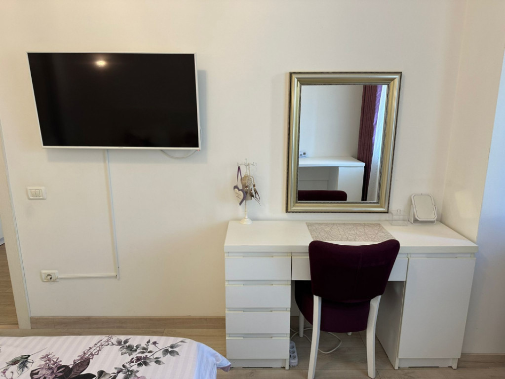 Agentia Experti Imobiliari va ofera spre inchiriere un apartament cu 2 camere situat în zona Tomis Nord,  la etajul 2 din 11, într-un bloc construit în 2016. Locuința are o suprafață utilă de 55 mp și se închiriază complet mobilată și utilată. Este inclus și un loc de parcare. Apartamentul este compus dintr-un living spațios cu mobilier de calitate, canapea extensibilă, aer condiționat și TV smart, un dormitor cu pat matrimonial, dressing generos, bucătărie complet echipată și baie dotată cu mașină de spălat. Balconul este deschis, cu acces din living și bucătărie.