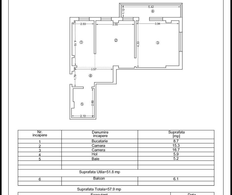 Suprafața utilă 57 m²