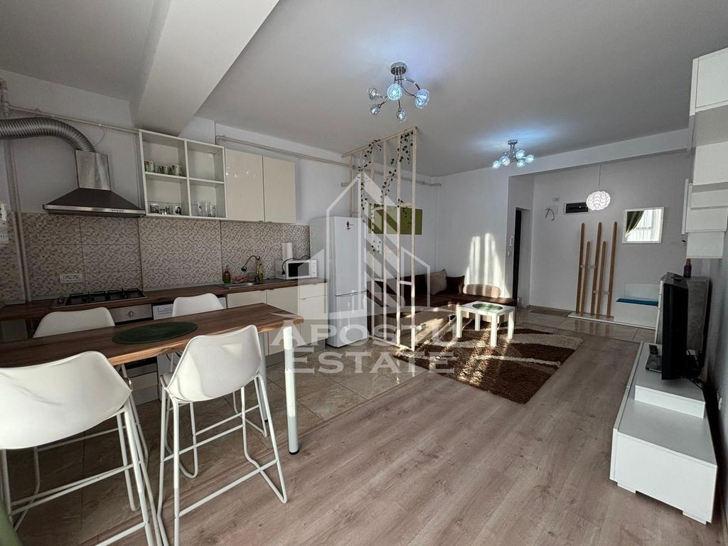 APOSTU ESTATE va propune spre inchiriere un apartament modern cu 2 camere open space, situat intr-un bloc nou finalizat in 2023, ideal pentru studenti romani, un cuplu sau o familie la inceput de drum. Suprafata utila: 48 mp + balcon 6 mp Compartimentare eficienta: • Living open space cu bucatarie integrata si acces la balcon • Dormitor spatios • Baie moderna cu finisaje de calitate • Hol de acces Confort si facilitati: • Centrala proprie cu incalzire prin pardoseala • Aer conditionat • Balcon de 6 mp • Loc de parcare descoperit inclus in pret • Apartament mobilat si utilat complet • Bloc finalizat in 2023 Detalii suplimentare: • Suprafata utila: 48 mp • Etaj 2 din 3 • Disponibil imediat Localizare: Zona linistita, cu acces facil catre oras, mijloace de transport in comun, magazine si alte puncte de interes. Ideal pentru: • Studenti romani • Cupluri • Familie tanara la inceput de drum Pret chirie: 430 euro Programeaza o vizionare! ID intern: CP2737978