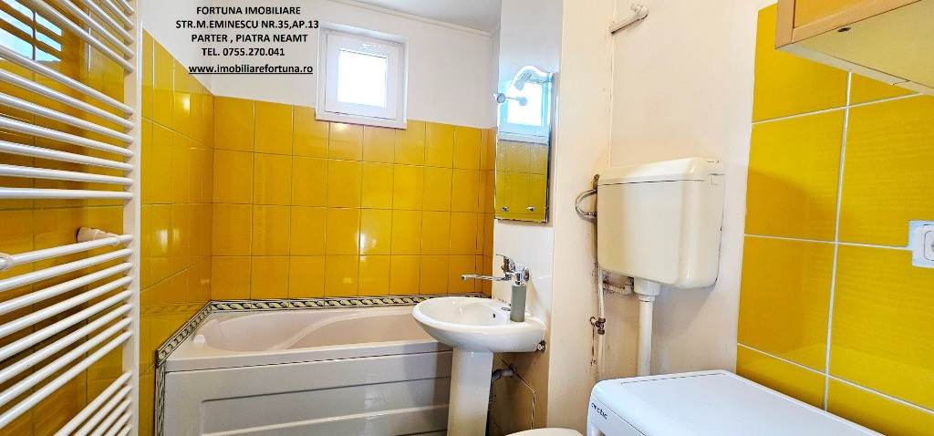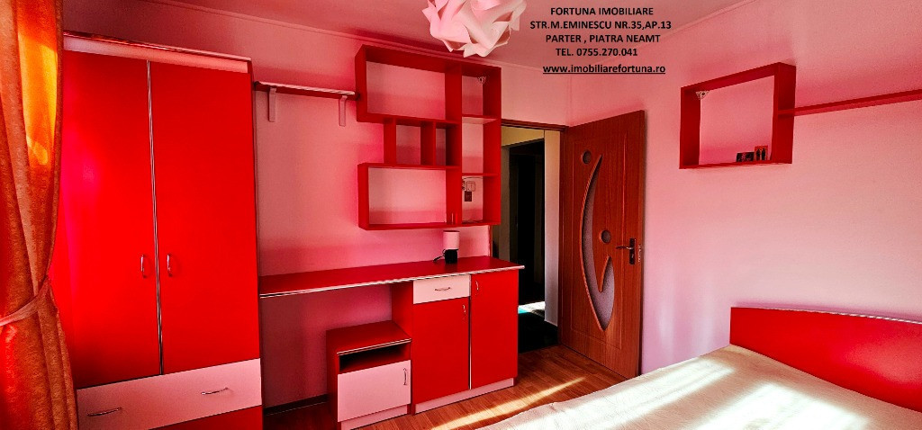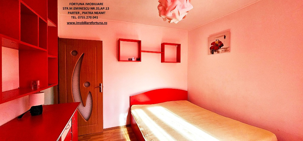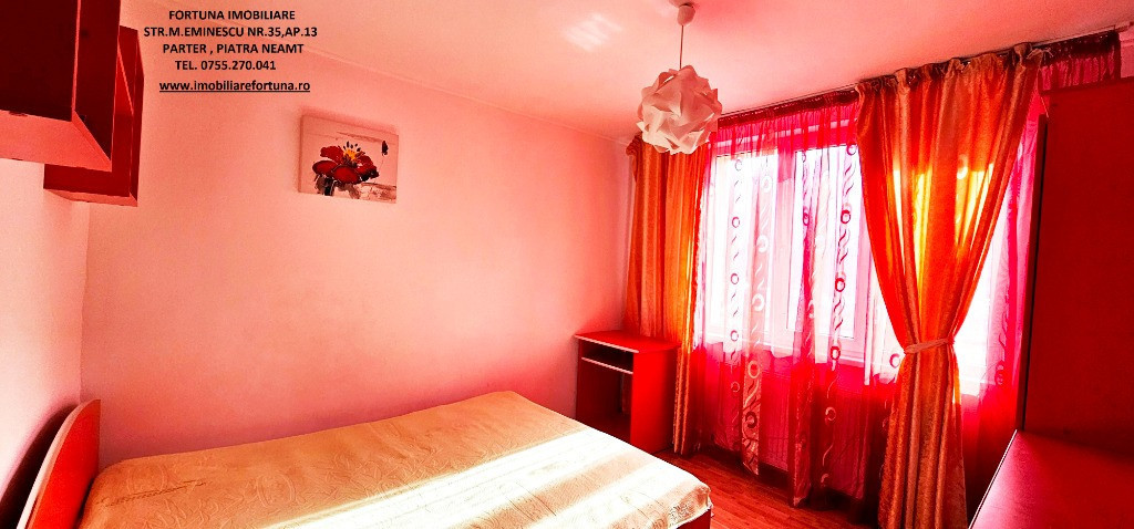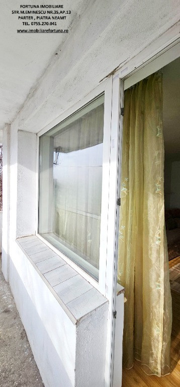 APARTAMENT 2 CAMERE, ETAJUL 1, CU BOXĂ, MOBILAT ȘI UTILAT, PRECISTA, ZONA CARREFOUR, 66.500 EURO Dacă sunteți în căutarea unui imobil pentru locuit sau pentru o investiție imobiliară, FORTUNA IMOBILIARE vă supune atenției acest apartament cu 2 camere, cu o structură decomandată, ce răspunde tuturor categoriilor de vârstă, amplasat în zona Carrefour din cartierul Precista, la etajul 1, într-un bloc cu 4 etaje, construit în anul 1982. Apartamentul are orientare cardinală SUD, termosistem exterior integral și interior parțial, fiind călduros și luminos (beneficiază de ferestre vitrate ce favorizează lumina naturală pe toată perioada zilei). Are suprafața utilă de 43,39 mp + suprafața balcon de 6,22 m, suprafața construită 50,22 mp, este prevăzut cu ușă antiefracție, acces controlat prin interfon, centrala termică, termopan, aer condiționat, gresie, faianță, parchet. Este compus din hol, bucătărie, 2 camere, baie și balcon. Beneficiază de o amplasare avantajoasa, având în imediata proximitate principalele centre comerciale din oraș, instituții de învățământ (școli, grădinițe), entități medicale, recreative, turistice și sportive (Ștrandul Tineretului, Stadionul Ceahlăul) și alte obiective de interes (Poliție, Jandarmerie etc). Are toate actele la zi, se vinde așa cum este prezentat în fotografii, iar dispoziția posesiei imobilului se face la semnarea actelor de vânzare. Este mobilat și utilat cu gust, totul funcțional ce permite o mutare imediată. Preț 66.500 euro Pentru o prezentare detaliată a acestei oferte, furnizarea unor informații suplimentare referitoare la situația juridică / identificarea imobilului și programarea unei vizionări, vă invităm la sediul nostru, Fortuna Imobiliare, situat in Piatra Neamț, str. M. Eminescu, nr. 35, ap. 13, parter, jud. Neamț, lângă fostul Tribunal, tel. contact 0755.270.041. Your comfort is our priority ! Oferta noastră completă o găsiți aici: https://imobiliarefortuna.ro/