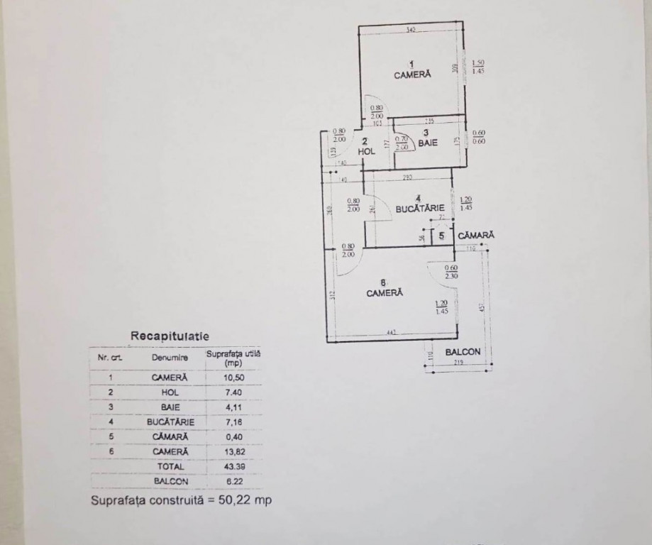 Suprafața utilă 50 m²