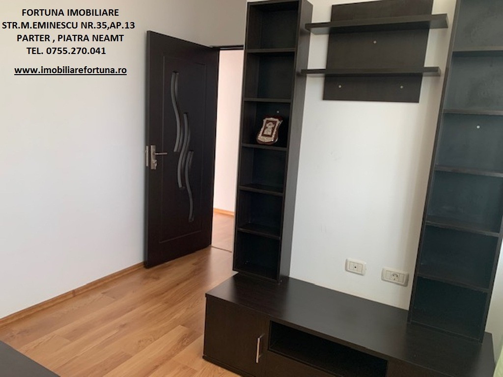 OFERTĂ ÎNCHIRIERE: APARTAMENT 2 CAMERE, MOBILAT ȘI UTILAT, SITUAT LA ETAJUL 2, ÎN BLOC NOU - CARTIERUL TEI, PREȚ 270 EURO FORTUNA IMOBILIARE oferă spre închiriere apartament cu 2 camere decomandate, situat la etajul 2,în bloc nou - cartierul TEI. Se închiriază pe minim un an, doar la familie sau persoana cu venituri stabile. Nu se primesc animăluțe. Preț chirie 270 euro / luna, garanție 270 euro - care se rambursează la finalul contractului, odată cu predarea imobilului în aceeași stare în care a fost preluat și cu debitele achitate la zi. Pentru o prezentare detaliată a acestei oferte, furnizarea unor informații suplimentare referitoare la situația juridică / identificarea imobilului și programarea unei vizionări, vă invităm la sediul nostru, Fortuna Imobiliare, situat pe str. M. Eminescu, nr. 35, ap. 13, parter, lângă fostul Tribunal, tel. contact 0755.270.041. Your comfort is our priority ! Oferta noastră completă o găsiți aici: https://imobiliarefortuna.ro/