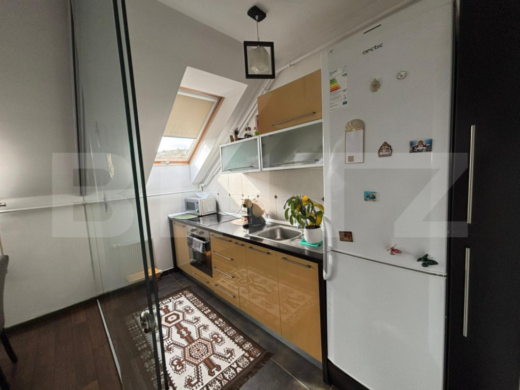 Blitz propune spre închiriere un apartament cochet, modern și bine compartimentat, situat într-un imobil recent construit din zona Porii. Apartamentul se află la mansardă și are o suprafață utilă de 52 mp, fiind ideal pentru o persoană activă, un cuplu tânăr sau pentru cei care apreciază liniștea, confortul și intimitatea unui spațiu primitor. Locuința este complet mobilată și utilată, amenajată cu atenție la detalii, folosind tonuri calde și finisaje de calitate, pentru a crea o atmosferă relaxantă și armonioasă. Compartimentarea este practică și eficientă: -un living luminos și aerisit, care oferă o zonă perfectă pentru relaxare și socializare; -bucătăria este separată de living printr-un geam sau o ușă glisantă, detaliu care asigură intimitate în timp ce păstrează senzația de spațiu deschis și modern; -dormitorul este confortabil, bine luminat natural și suficient de generos pentru un pat matrimonial și spații de depozitare; -baia este elegant finisată, dotată cu toate cele necesare pentru confortul zilnic; -holul oferă un acces lejer către toate camerele și spații suplimentare pentru depozitare. Un mare avantaj al acestui apartament este locul de parcare subteran,care nu e inclus in pret – un plus important în orice anotimp, care oferă siguranță și confort. Imobilul se află într-o zonă liniștită, dar foarte bine conectată la punctele de interes din cartierul Porii. În apropiere se găsesc supermarketuri, farmacii, cafenele, restaurante, școli, grădinițe și stații de transport în comun, astfel încât tot ce ai nevoie este la câteva minute distanță. Apartamentul este liber și disponibil imediat, pregătit să devină noul tău cămin. Pentru mai multe detalii sau pentru a programa o vizionare, te rog să mă contactezi telefonic sau prin mesaj privat. Cod ofertă / ID BLITZ: P155276 Id intern: P155276