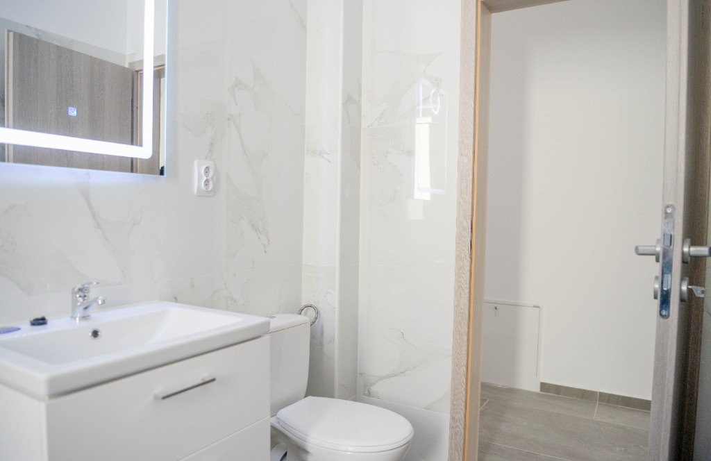 Dezvoltator imobiliar vand apartament 2 camere, la cheie in bloc nou construit integral din caramida si izolat termic (polistiren 10cm EPS 80), situat in comuna Giroc,strada Soarelui,in spatele muzeului de apa Aquatim. Apartamentul este situat intr-un complex rezidential de 48 blocuri cu parc privat . Suprafata 43 mp+balcon 3,5 mp Apartamentul este compus din: living, dormitor, bucatarie, baie,hol si balcon. Are toate utilitatile incluse apa,gaz,canal,curent. Apartamentul este dotat cu centrala proprie pe gaz, incalzire in pardoseala, usi de interior PortaDoors, gresie, faianta, podele laminate, interfon. Fiecare apartament are inclus in pret si un loc de parcare. Blocul este dotat cu sistem de supraveghere video pe curte si pe casa scarii. Curtea este pavata si iluminata. Pret 79500 euro TVA inclus in pret. Acceptam orice fel de credit bancar. Oferim consiliere pentru a obtine cel mai avantajos credit ipotecar sau Prima Casa. Pentru mai multe detalii nu ezitati sa ne contactati:0765940893-Vlad Va multumim!