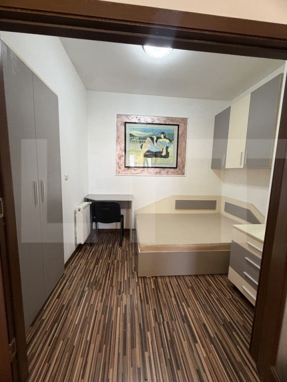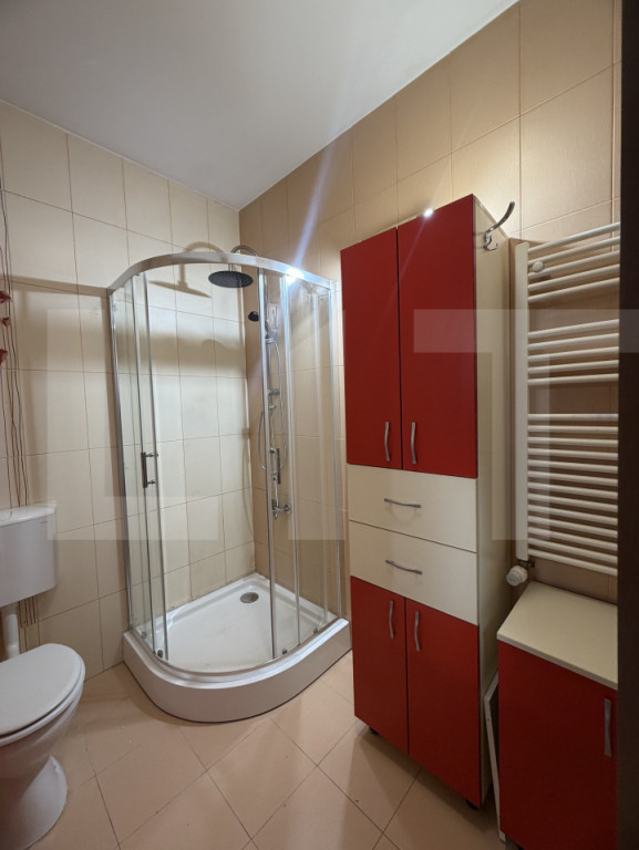 Blitz va propune spre inchiriere apartament modern, mobilat și utilat complet, situat în complexul rezidențial Ared UTA — una dintre cele mai apreciate zone rezidențiale din Arad, cu spații verzi, liniște și acces rapid la toate facilitățile orașului. Apartamentul se află la etajul 6 din 10, într-un bloc modern, oferind lumină naturală generoasă și o compartimentare inteligentă care maximizează spațiul disponibil. Ce include: Living cu bucătărie open space — spațios, luminos, mobilat cu masă dining și bucătărie complet utilată cu plită gaz, cuptor, hotă și microunde Dormitor matrimonial — pat dublu, șifonier, iluminat LED modern, tablouri decorative Al doilea dormitor — pat, birou, șifonier, spațiu de depozitare Baie cu cabină de duș, lavoar, mașină de spălat inclusă Centrală termică proprie — control total asupra încălzirii și apei calde Parchet în toate camerele Mobilat și utilat complet — pregătit pentru mutare imediată Suprafață: 56 mp utili Etaj: 6/10 Compartimentare: open space + 2 dormitoare Centrală: proprie Chirie: 400 euro/lună Ideal pentru un cuplu sau două persoane care doresc confort, liniște și o locație modernă în Arad. Cod ofertă / ID BLITZ: P170051 Id intern: P170051
