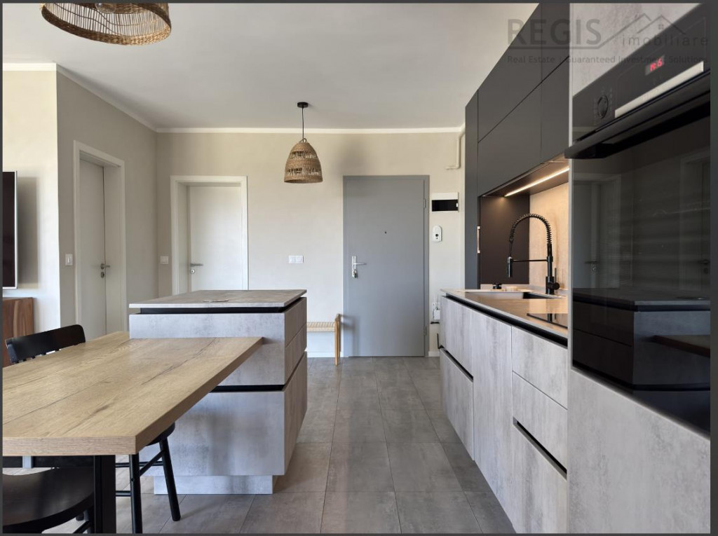 ID intern: 6232. Regis Imobiliare va prezinta spre vanzare un apartament modern de 2,5 camere situat in Avangarden 3 ,Tractorul. Apartamentul situat la parterul unui bloc de 5 etaje,are o suprafata utila de 61 mp utili ,la care se adauga cei 3 mp ai balconului. Date despre structura apartamentului: Camera de zi bucatarie: 35,19 mp Dormitor: 15,11 mp Depozitare: 6,27 mp Baie: 4,56 mp Balcon vitrat: 3,24 mp Terasa de 3.4mp Apartamentul detine gradina proprie cu o suprafata de 35mp,partial amenajata, este inscrisa in CF. Boxa de 3,29 mp si parcarea proprie sunt incluse in pretul de vanzare. Apartamentul se vinde mobilat si utilat,mobilierul fiind de calitate superioara iar electrocasnicele premium. Ansamblul de blocuri moderne, cu structuri care va ofera confort si siguranta,este in imediata vecinatate a numeroase centre comerciale Mega Image,Jysk,Penny cat si in vecinatatea parcurilor de joaca si a mijloacelor de transport in comun. Ideal atat ca locuinta privata cat si ca investitie in domeniul AIRBNB,aceasta proprietate reprezinta o oportunitate de investitie. Comisionul agentiei este de 2% TVA,din valoarea tranzactionata.