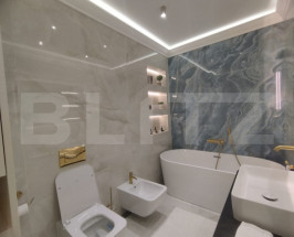Apartamentul este dotat cu obiecte sanitare de calitate superioară Hansgrohe și Villeroy & Boch, care asigură atât un design elegant, cât și durabilitate și confort sporit. În plus, proprietatea beneficiază de electrocasnice moderne incluse, printre care se numără mașina de spălat rufe, mașina de spălat vase, frigiderul, frigiderul pentru vinuri, precum și un sistem de aer condiționat dual inverter, cu funcții de răcire, încălzire și purificare a aerului, oferind un climat interior optim pe tot parcursul anului. Apartamentul beneficiază si de o stație de dedurizare a apei, oferind un plus de confort și calitate în utilizarea zilnică.