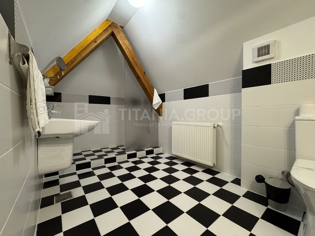 Pe Calea Poienii, într-o vilă discretă și rafinată, acest apartament de 3 camere cu 129 mp utili se află într-una dintre cele mai liniștite și verzi zone ale Brașovului, la câteva minute de Livada Poștei și Centrul Istoric. Poziționarea sa oferă echilibrul rar între intimitate, natură și acces rapid către inima orașului. Imobilul este organizat pentru închiriere pe termen lung, în trei unități locative distincte, fiecare cu acces separat, oferind un nivel ridicat de intimitate și un ambient discret si privat. Atmosfera generală este una calmă, selectă, cu o energie bună și constantă, potrivită unui stil de viață frumos. Apartamentul ocupă un nivel generos ( Etaj 2) și este compus dintr-o zonă de zi luminoasă, două dormitoare, dintre care unul matrimonial de 23 mp cu baie proprie, bucătărie închisă complet mobilată și utilată, trei băi moderne, fiecare dotată cu cabină de duș plus mansarda. Mansarda adaugă un plus de caracter proprietății - un spațiu versatil, ideal ca zonă de noapte, dar și ca atelier creativ, loc de relaxare, studio de lucru sau spațiu dedicat copiilor. Terasa comună de 150 mp completează perfect locuința, oferind un spațiu de respiro și socializare într-un cadru verde și liniștit. Proprietatea beneficiază și de loc de parcare acoperit, centrală proprie, aer condiționat, tâmplărie PVC cu geam termopan și ușă metalică. Stilul interior îmbină elegant influențe Art Deco și accente ale anilor ’20, reinterpretate într-o manieră contemporană, cu materiale de calitate și detalii atent alese. Rezultatul este un spațiu cu personalitate, cald, echilibrat și inspirațional. Această locuință este ideală pentru cei care iubesc frumosul în forma lui autentică , persoane care caută mai mult decât un apartament, un loc cu energie, poveste și identitate. Este perfectă pentru a trăi confortabil, dar și pentru a crea: un spațiu potrivit pentru artiști, scriitori, freelanceri, creatori de conținut sau oricine își dorește un cadru inspirațional pentru lucru de acasă. Este un apartament ideal pentru cei care iubesc estetica, liniștea și spațiile cu poveste, potrivit pentru locuire, creație, lucru de acasă sau un stil de viață artistic și autentic. Acest apartament nu poate fi pe deplin redat în cuvinte, vizionarea lui îi va evidenția adevăratele calități, este un loc în care fiecare zi poate fi trăită ca parte dintr-o poveste, cu liniște, lumină, detalii rafinate și acces facil către tot ceea ce înseamnă viața vibrantă a Brașovului istoric. Pentru stabilirea unei vizionari, va rog sa ma contactati. Georgiana Draghici 0729.075.309