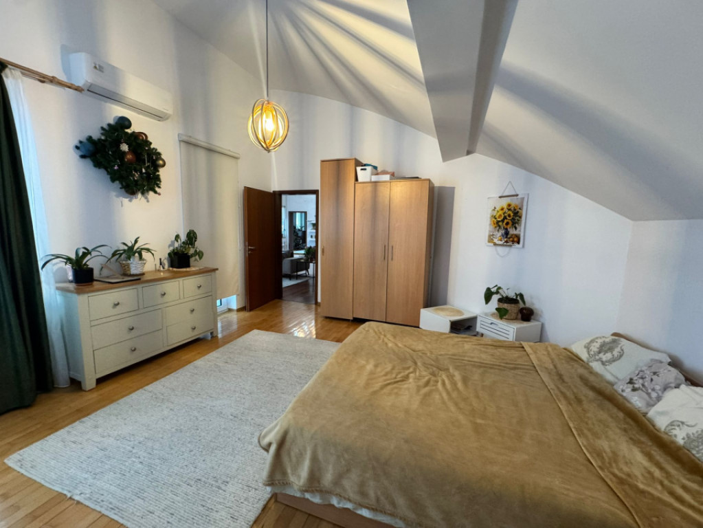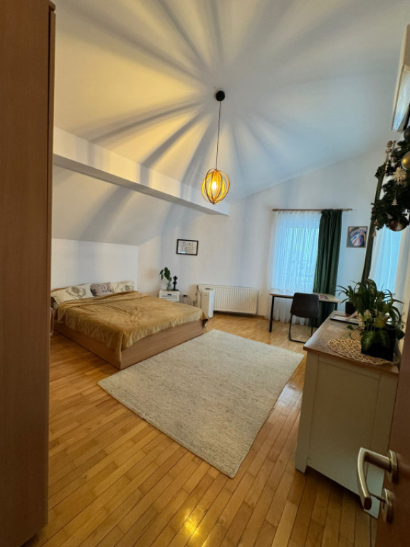 Locuința dispune de o suprafață utilă de 130 mp, la care se adaugă un garaj de 19 mp, precum și cota-parte de teren de 9 ari, beneficiind totodată de curte privată, amenajată cu zonă de barbeque și acces securizat prin poartă cu telecomandă.